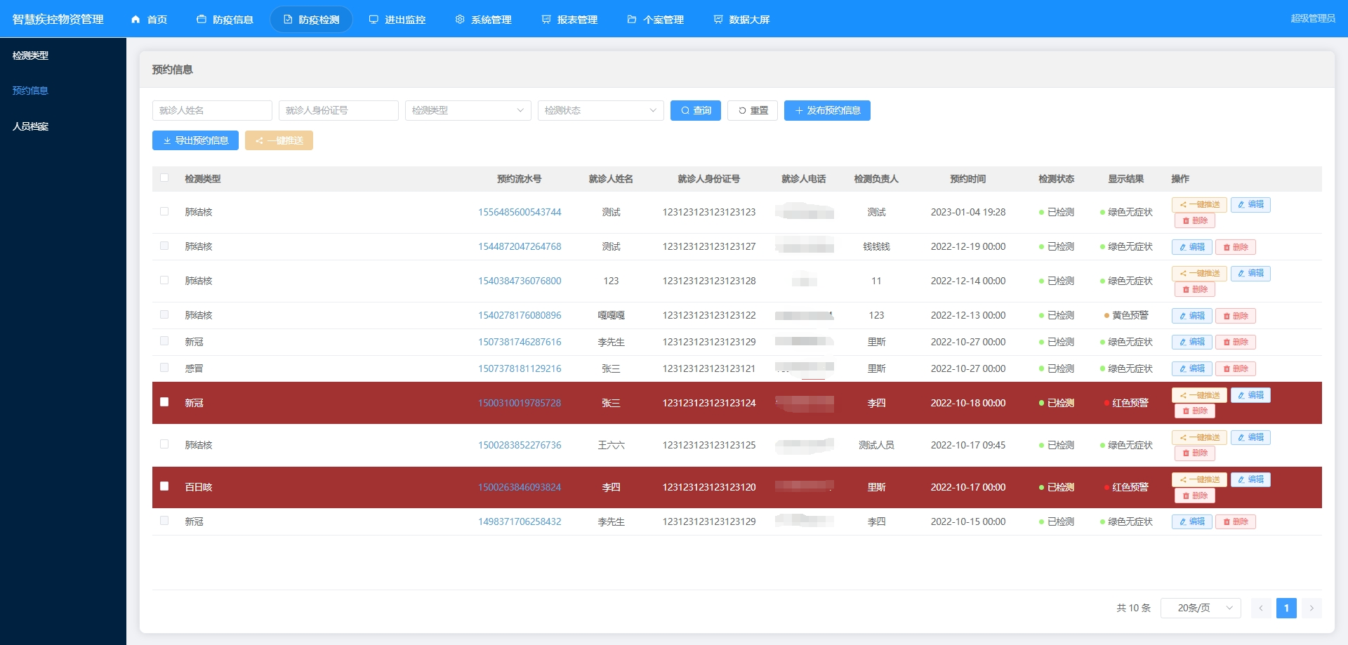 预约信息:管理预约或服务的预约,包括预约时间、人员和检测项目。
