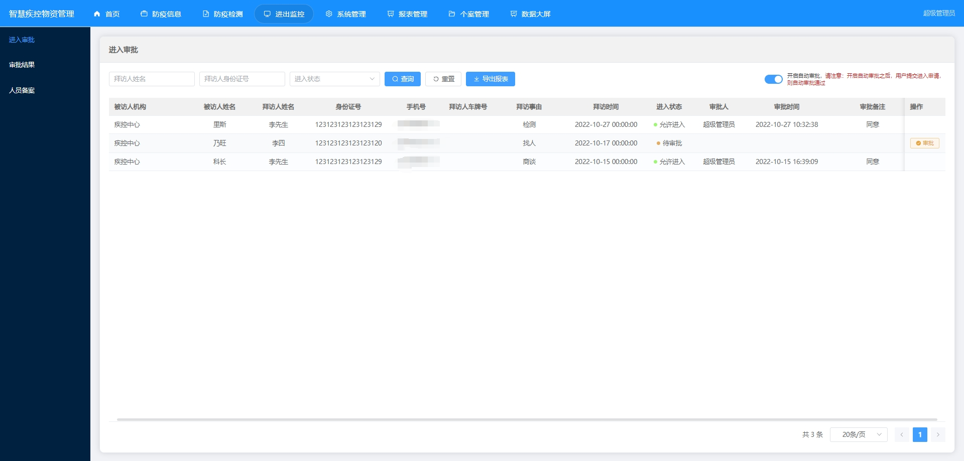 进入审批:处理进入特定区域或参与特定活动的申请请求,确保安全和合规性。
