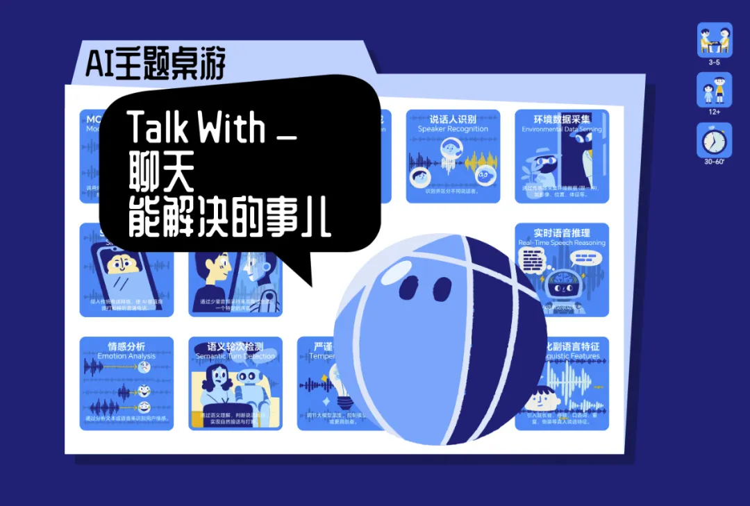 AI 主题桌游《Talk With》(中文名:聊天能解决的事儿) 支持 3-5 人同场竞技,每局约 40 分钟。