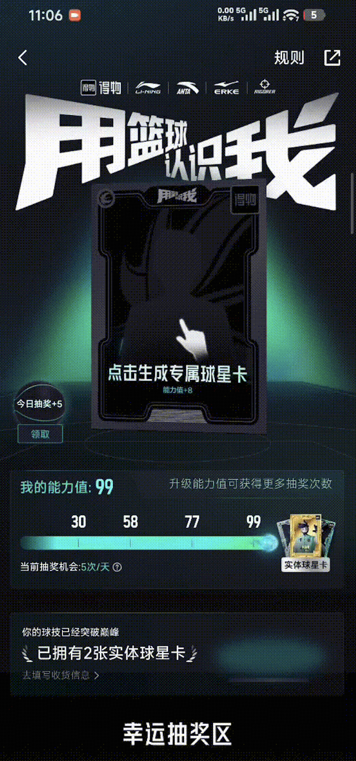 近期,得物社区活动「用篮球认识我」推出 “用户上传图片生成专属球星卡” 核心玩法。