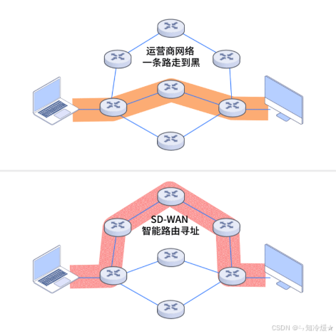 传统运营商网络的运行机制依赖于分散决策,每个路由节点仅能依据有限的本地信息进行数据转发,犹如在没有实时导航的情况下驾驶,只能依赖逐个路牌的指引前行,既无法预知远端的交通拥堵,也难以主动绕行故障区域。而 SD-WAN 的引入,相当于为整个网络配置了一套“智能导航系统”,不仅能实时探测链路质量、识别拥塞,还可动态选择最优路径,从而确保数据传输既高效又可靠。