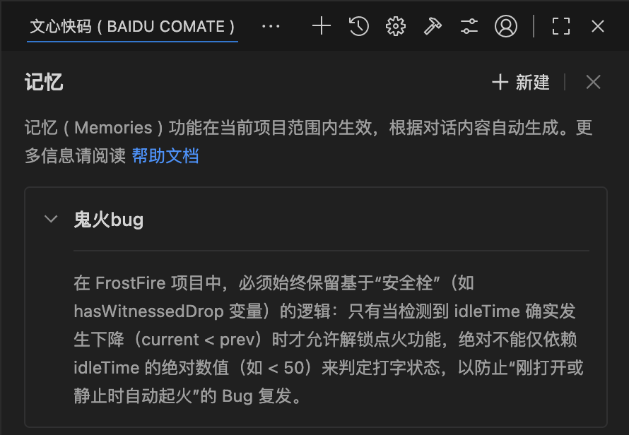 ```typescript// src/activityTracker.tsexport class ActivityTracker { private keystrokeTimestamps: number[] = []; // 记录按键时间戳 private readonly WINDOW_SIZE = 60000; // 统计窗口:60秒 private readonly IDLE_THRESHOLD = 15000; // 空闲阈值:15秒 private readonly SNOW_ACCUMULATE_THRESHOLD = 60000; // 积雪阈值:60秒 // 记录一次按键 public recordKeystroke(): void { const now = Date.now(); this.keystrokeTimestamps.push(now); this.cleanOldTimestamps(now); } // 清理过期的时间戳 private cleanOldTimestamps(now: number): void { this.keystrokeTimestamps = this.keystrokeTimestamps.filter( ts => now - ts < this.WINDOW_SIZE ); } // 计算当前热度值 (0-100) public getHeatLevel(): number { const now = Date.now(); this.cleanOldTimestamps(now); // 基于最近10秒的按键数计算热度 const recentKeystrokes = this.keystrokeTimestamps.filter( ts => now - ts < 10000 ).length; // 假设每秒6次按键为满热度 return Math.min(100, (recentKeystrokes / 60) * 100); } // 获取空闲时间(毫秒) public getIdleTime(): number { if (this.keystrokeTimestamps.length === 0) return Infinity; const lastKeystroke = Math.max(...this.keystrokeTimestamps); return Date.now() - lastKeystroke; } // 判断当前状态 public getCurrentState(): 'fire' | 'idle' | 'snow' | 'snow_accumulate' { const idleTime = this.getIdleTime(); if (idleTime >= this.SNOW_ACCUMULATE_THRESHOLD) return 'snow_accumulate'; if (idleTime >= this.IDLE_THRESHOLD) return 'snow'; if (this.getHeatLevel() > 10) return 'fire'; return 'idle'; }}```