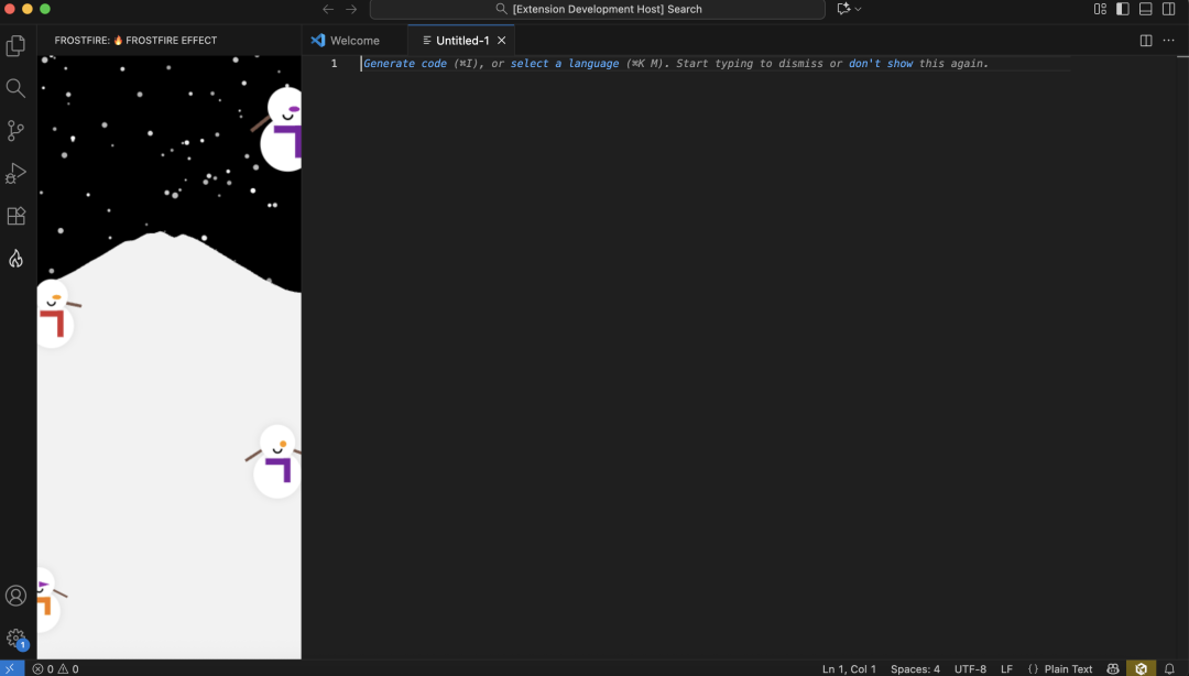 **FrostFire** 是一个增加编程趣味性的 VS Code 视觉增强插件,通过在编辑器中渲染动态视觉效果(火焰和雪花),让编程体验更加生动有趣。