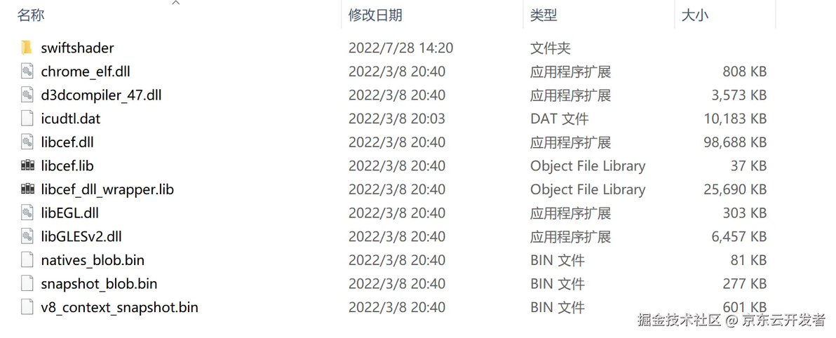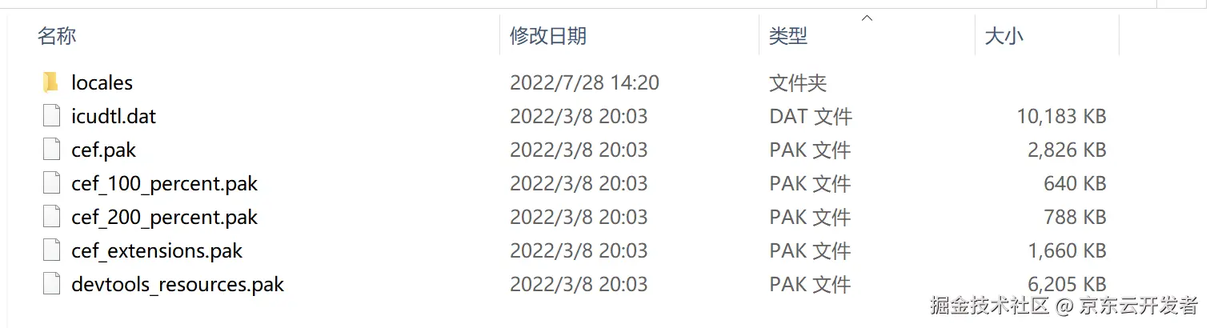 基本的库文件包含了多个文件夹和资源文件,这些是运行 cef 时必须要依赖的,因此需要打包在安装包中。