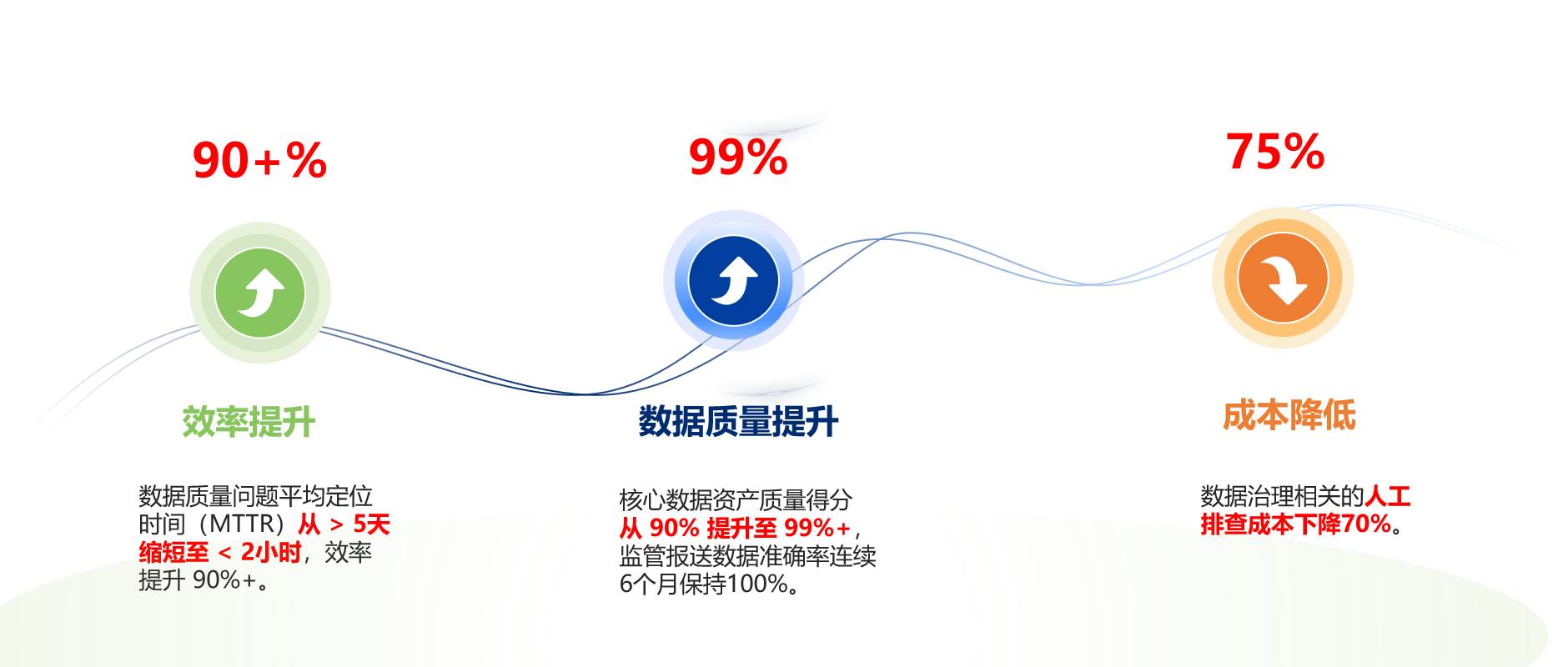 核心数据质量得分:从 90%提升到 99%+,连续 6 个月监管报送零失误;