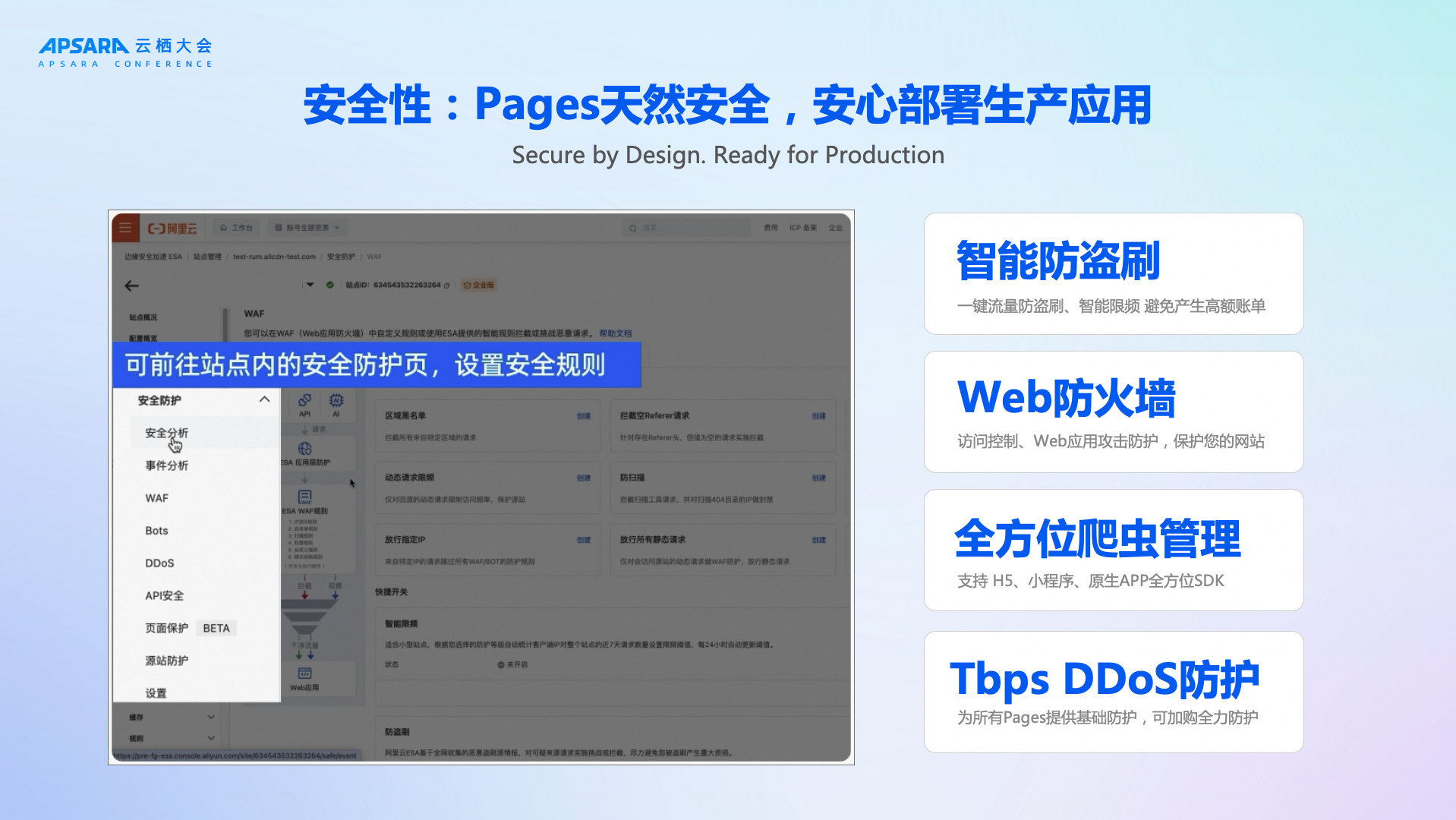 安全与 Pages 共驻同一边缘节点,零额外时延