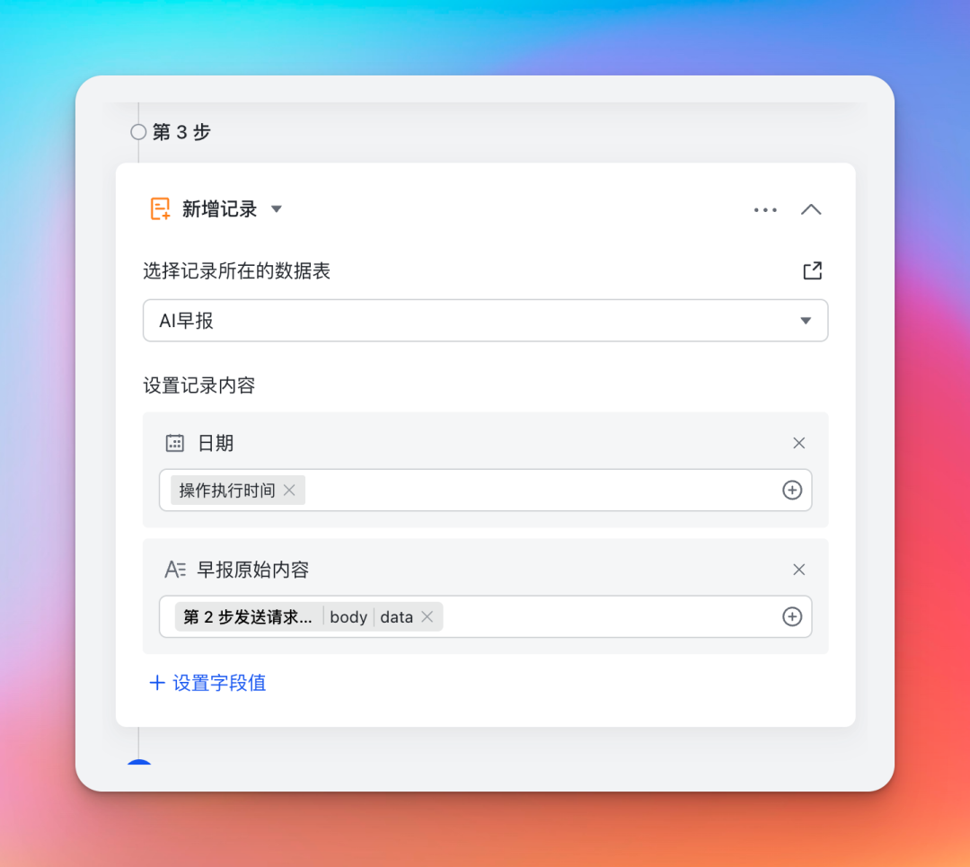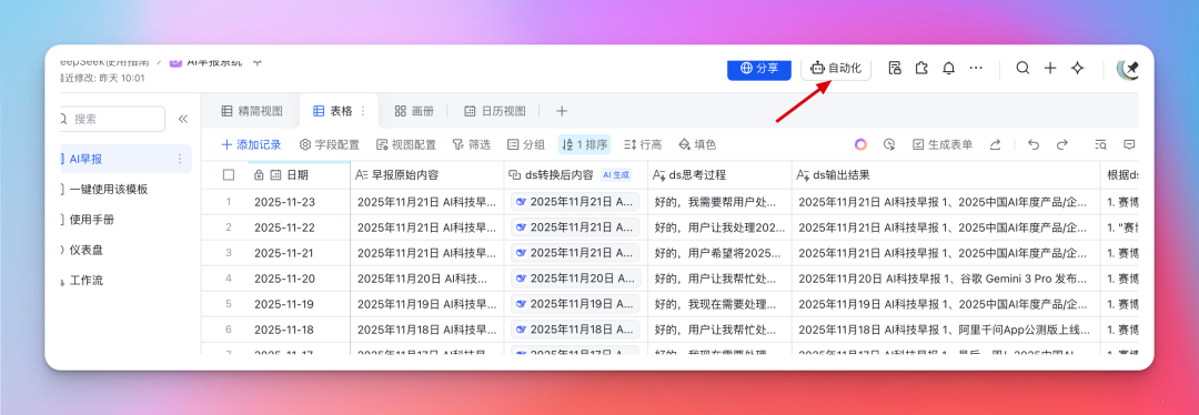 还有社群我每天都在用的早报系统也是基于飞书多维表格自动化搭建的。