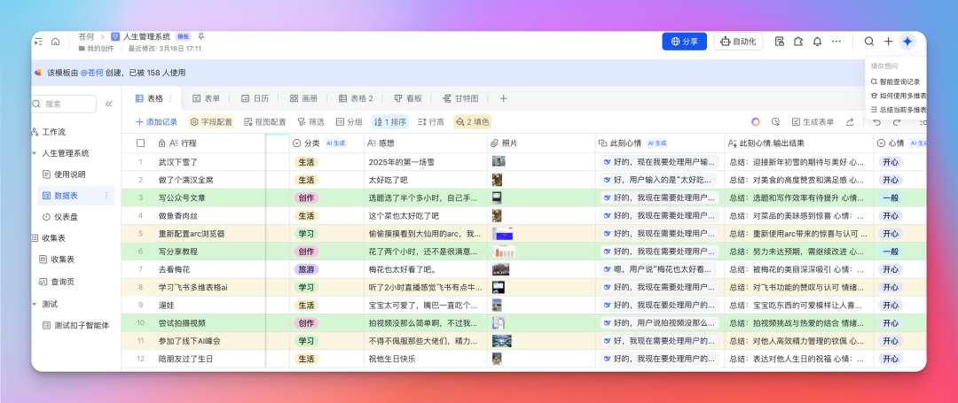 在年初那会,做了个 DeepSeek+飞书多维表格制作人生管理系统的视频教程。