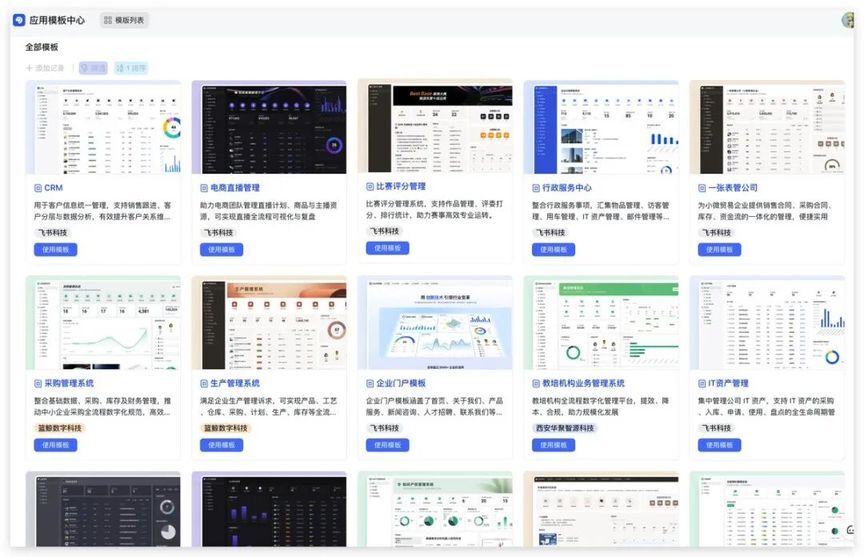 内置了不少模板,像什么 CRM、电商管理系统、采购管理系统,生产管理系统等都有。