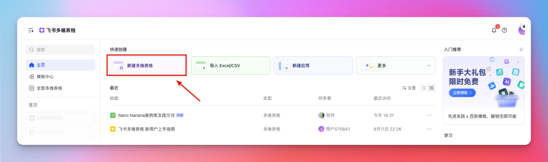 现在飞书多维表格也已经独立了,第二种方式是直接打开以下地址:https://base.feishu.cn/