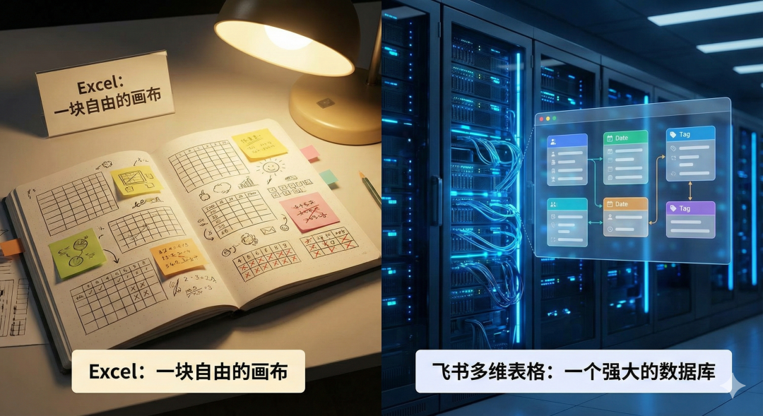 那问题来了,既然都有 Excel 了,为什么我们还需要飞书多维表格?它俩到底有啥本质区别?