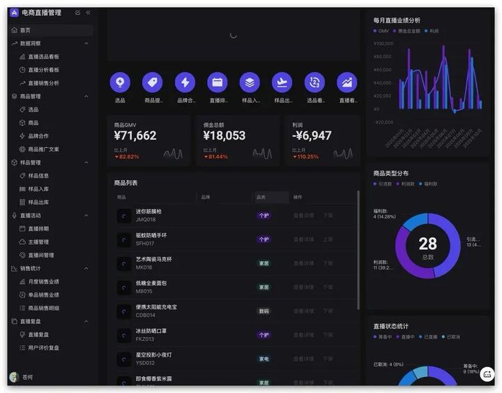 比如这个电商直播管理系统,就是用应用模式搭建的,无敌。