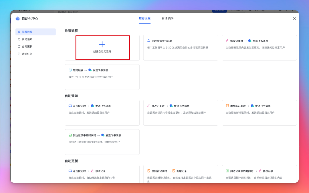 点击自动化后,可以选择推荐的流程,也可以自定义流程。
