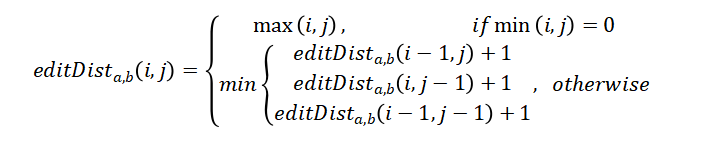 编辑距离公式如下,其中 i,j 分别为字符串 a,b 的下标: