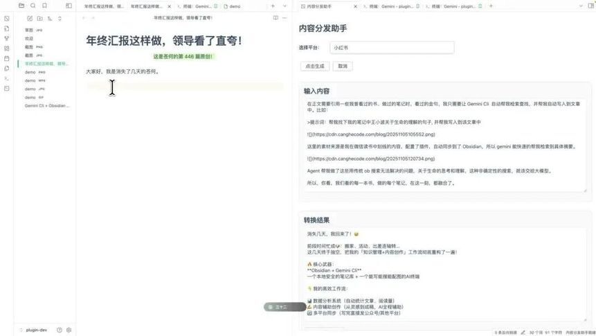 之前分享过在 Obsidian 中配合 Gemini Cli 做插件开发,非常舒服。