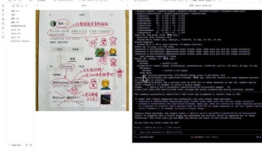 小凹直接给到完整的 FFmpeg 命令给到 Gemini Cli 精准执行,完成需求。