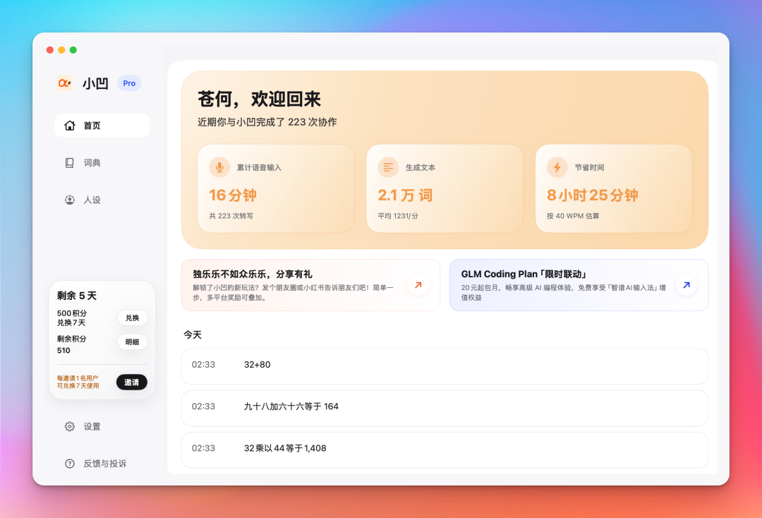 智谱 AI 输入法很好用,我看他们也发布并开源了 GLM-ASR 系列语音识别模型,而智谱 AI 输入法就是基于该模型打造的。