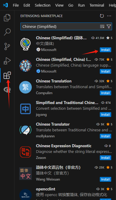 插件市场地址:https://marketplace.visualstudio.com/items?itemName=MS-CEINTL.vscode-language-pack-zh-hans