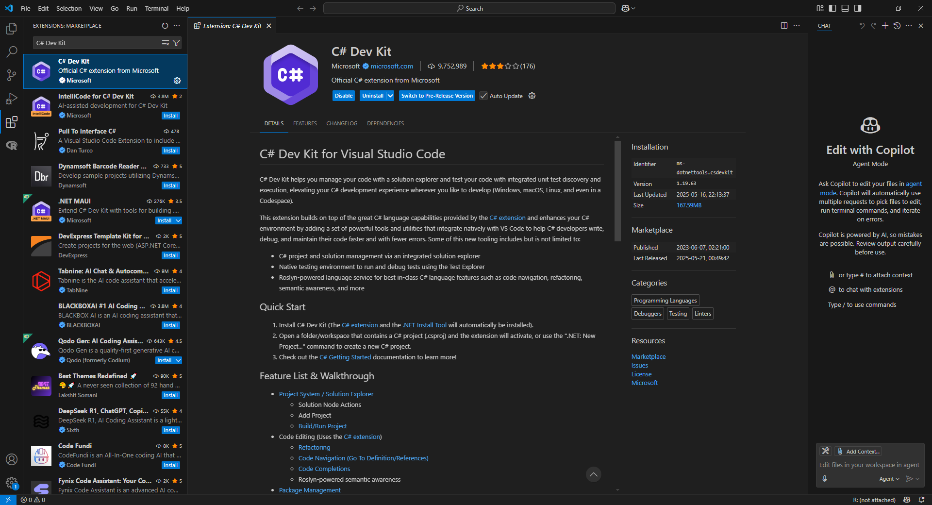 C# Dev Kit for Visual Studio Code(C# Dev Kit)是一个扩展工具,它为您的 C#开发提供了一系列强大的功能和实用工具,以帮助您更高效地编写、调试和维护代码。它能够在 Windows、macOS、Linux 甚至 Codespace 等各种开发环境中使用,提升您的 C#开发体验。