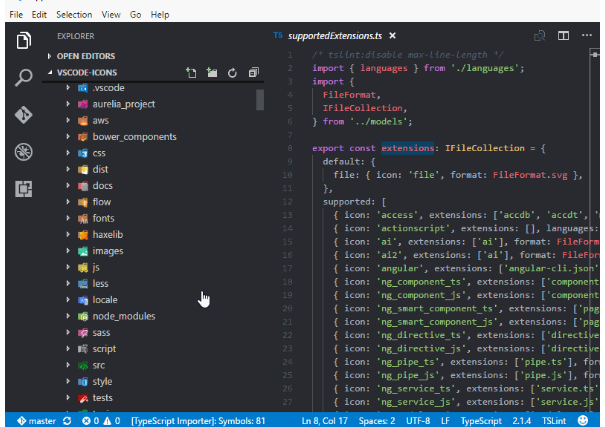 vscode-icons 不仅能够给文件夹、文件添加上舒适的图标,而且可以自动检测项目,根据项目不同功能配上不同图标,例如,git、Markdown、配置项、工具类等。