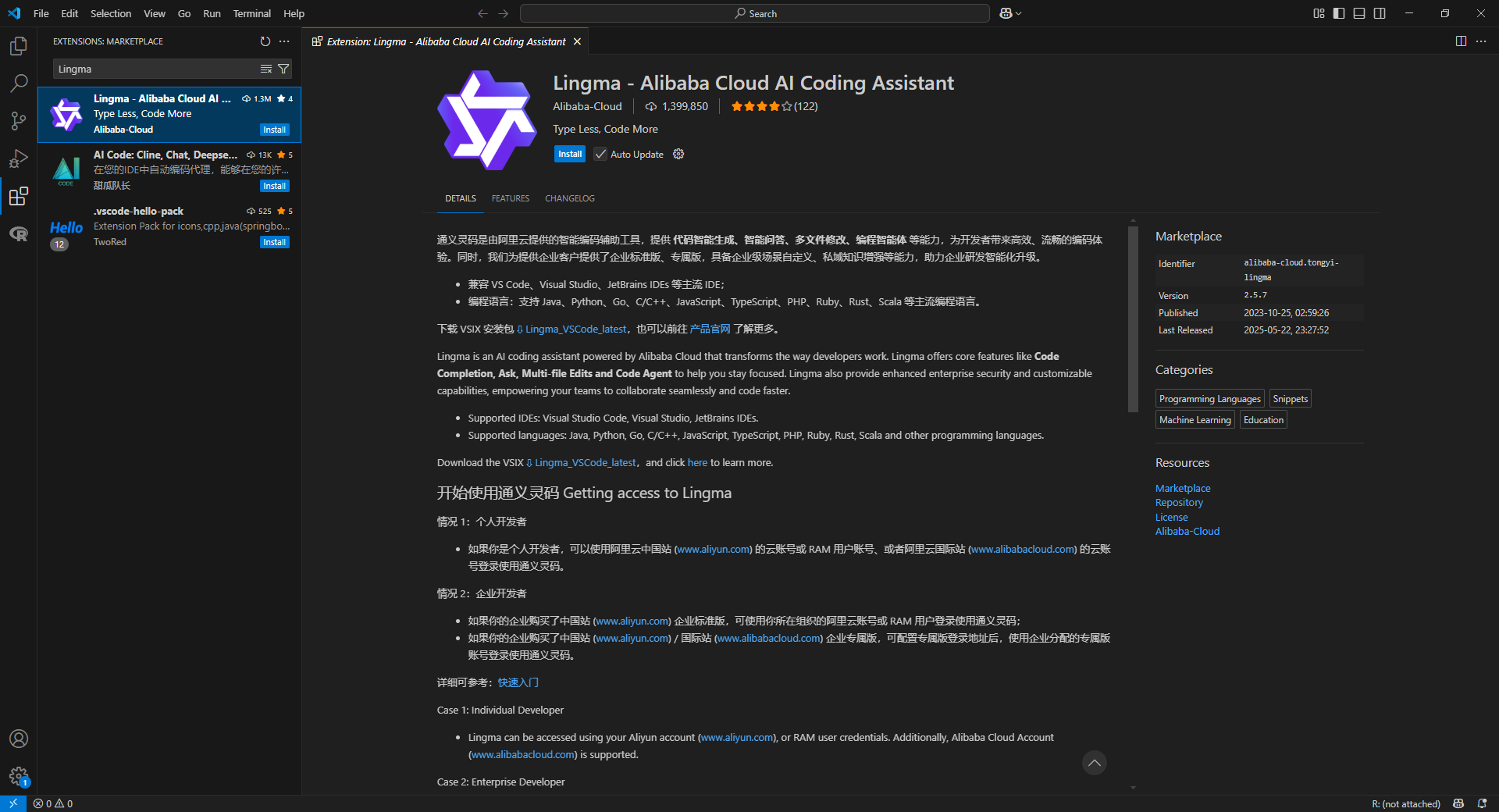插件市场地址:https://marketplace.visualstudio.com/items?itemName=Alibaba-Cloud.tongyi-lingma