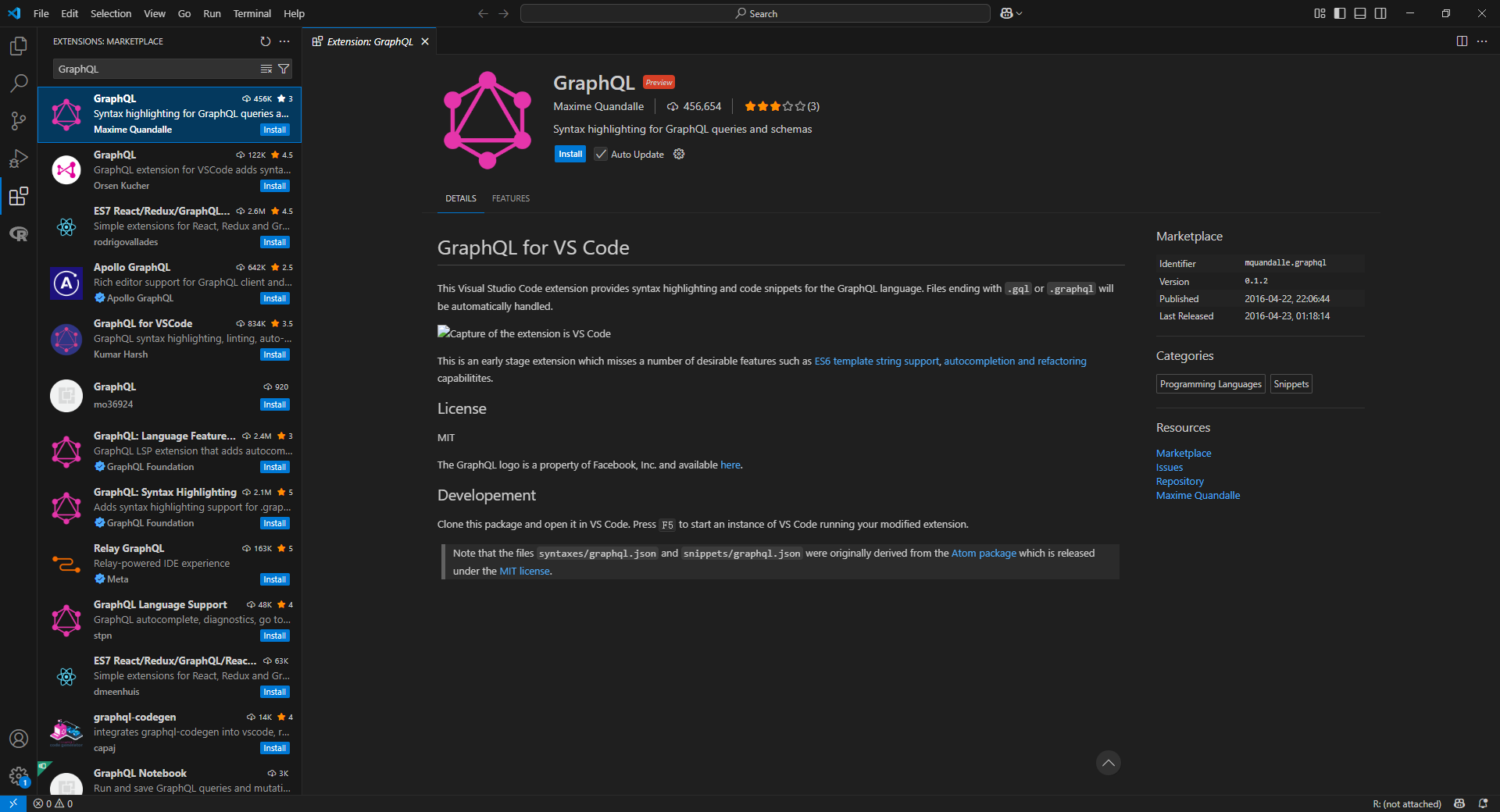 插件市场地址:https://marketplace.visualstudio.com/items?itemName=mquandalle.graphql