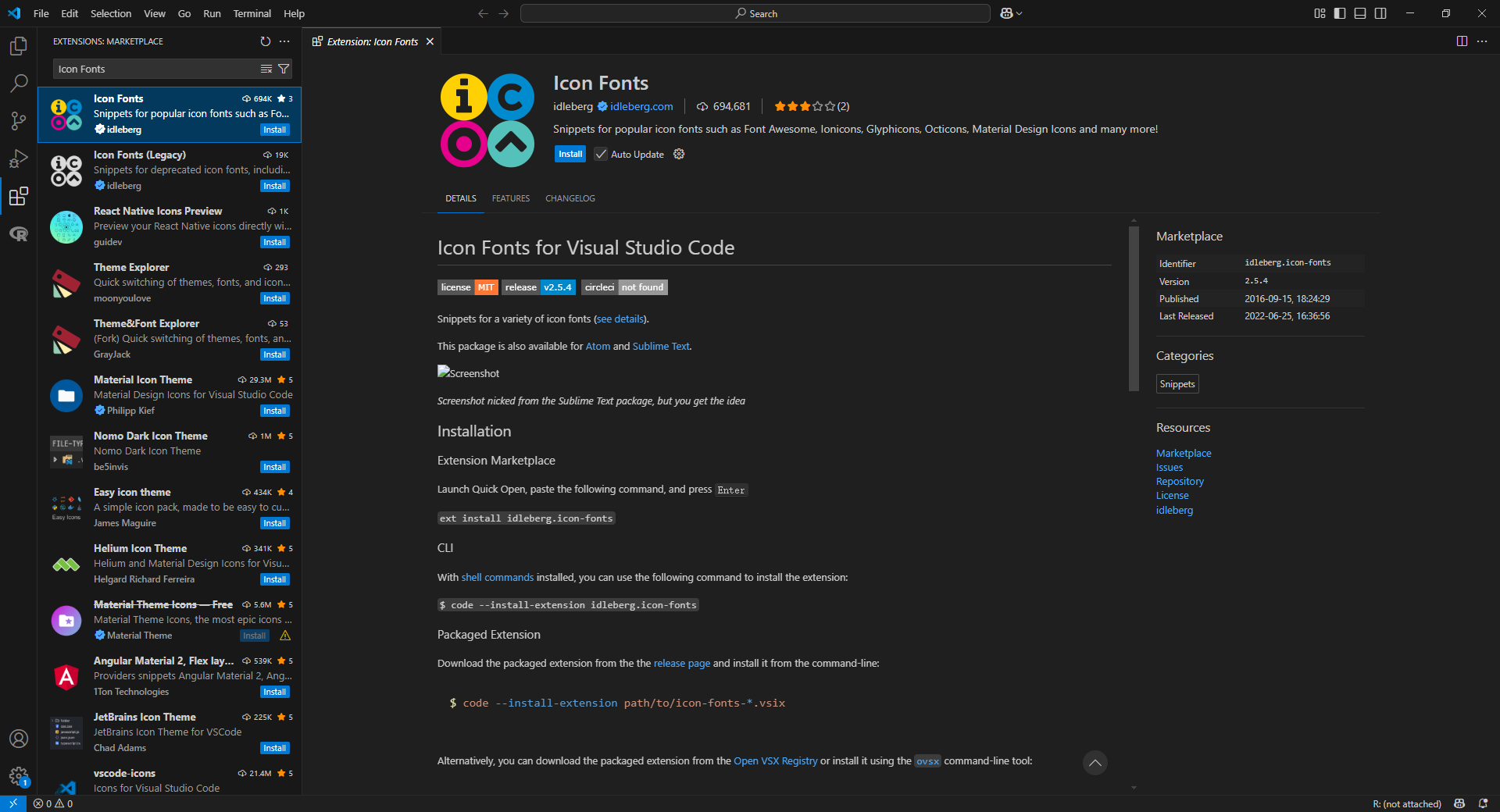 插件市场地址:https://marketplace.visualstudio.com/items?itemName=idleberg.icon-fonts