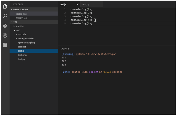 运行多种语言的代码段或代码文件 C, C++, Java, JavaScript, PHP, Python, Perl, Perl 6, Ruby, Go, Lua, Groovy, PowerShell, BAT/CMD, BASH/SH, F# Script, F# (.NET Core), C# Script, C# (.NET Core), VBScript, TypeScript, CoffeeScript, Scala, Swift, Julia, Crystal, OCaml Script, R, AppleScript, Elixir, Visual Basic .NET, Clojure, Haxe, Objective-C, Rust, Racket, Scheme, AutoHotkey, AutoIt, Kotlin, Dart, Free Pascal, Haskell, Nim, D, Lisp, Kit, V, SCSS, Sass, CUDA,和自定义命令。