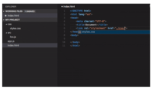 在编辑器中输入对应文件的路径,会自动补全(在 Import、Require 导入/引入模块时非常便捷好用)。