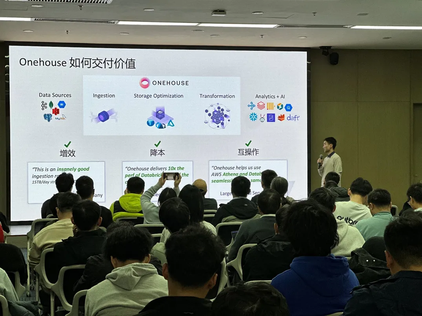 近日,由京东主办的 Apache Hudi Meetup 亚洲站在京东集团总部顺利举行,来自 Onehouse、京东、快手和华为的四位技术专家齐聚一堂,不仅带来了 Apache Hudi 1.1 版本前瞻,也分享了各自在数据湖仓建设上的"独门秘籍"。从 AI 场景的支持,到实时数据处理,再到成本优化,每个话题都直击当下数据工程师最关心的痛点。