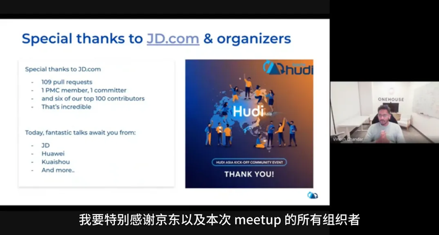 Vinoth 特别感谢京东对 Apache Hudi 的重大贡献,在前 100 位贡献者中,有 6 位来自京东。最后,他也邀请更多开发者加入这个充满活力的社区,共同推动数据基础设施的创新与发展。