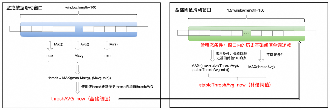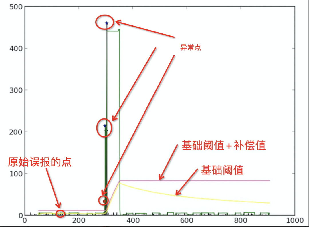 最小静态阈值是一个预先设定好的最低门槛,。最终的异常判定阈值为 “最小静态阈值” 和 “动态调整阈值(基础阈值 + 补偿值)” 两者中的最大值,确保只有同时超过业务容忍底线和系统动态波动范围的数据才被视为异常。