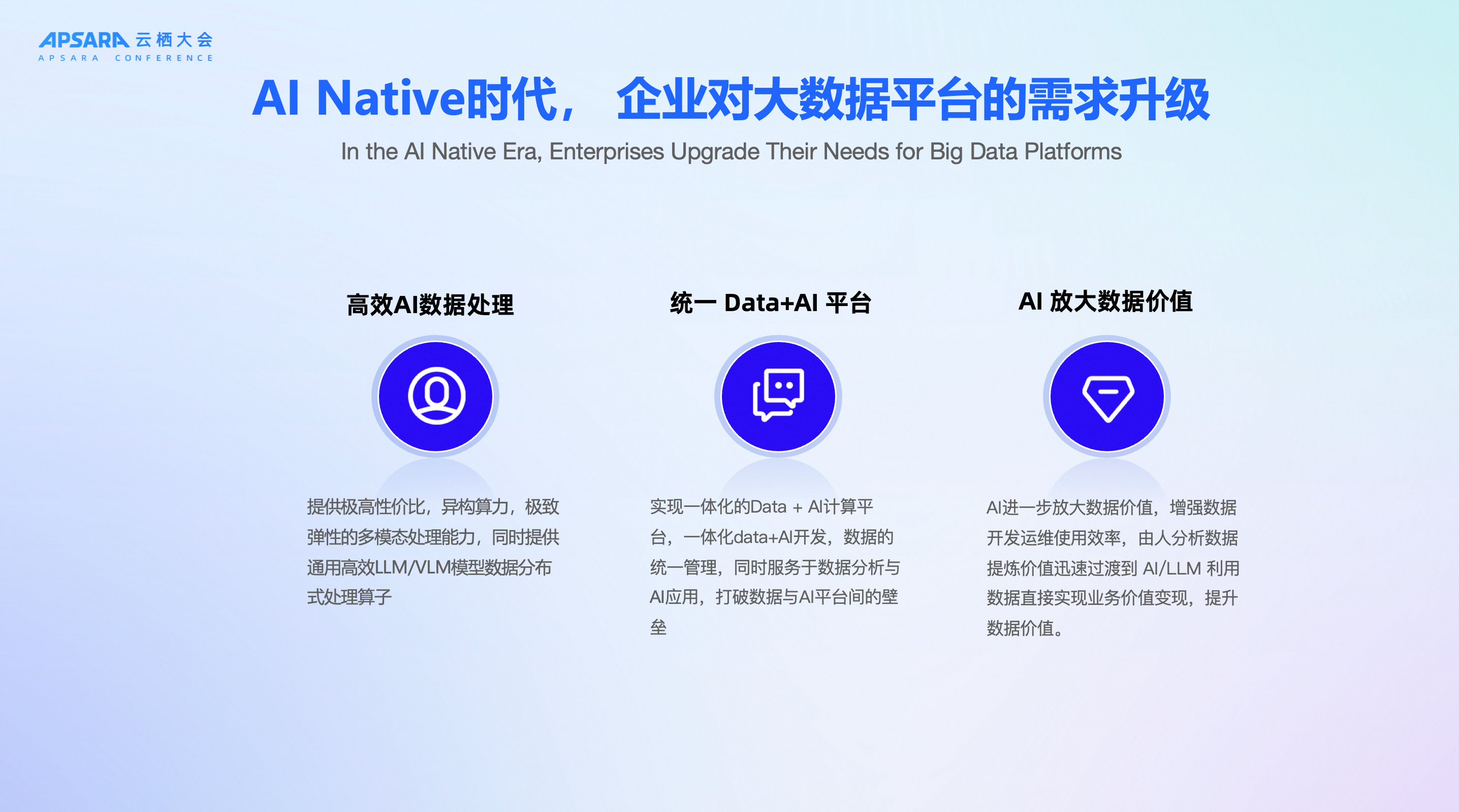 在云栖大会的 ODPS 分论坛上,阿里云 MaxCompute 迎来了十五周年的重大技术发布。从云原生到 AI 原生,MaxCompute 正式宣告迈入一个全新的发展阶段,推出 AI 原生数据仓库核心能力,构建面向 AI 时代的大数据基础设施。
