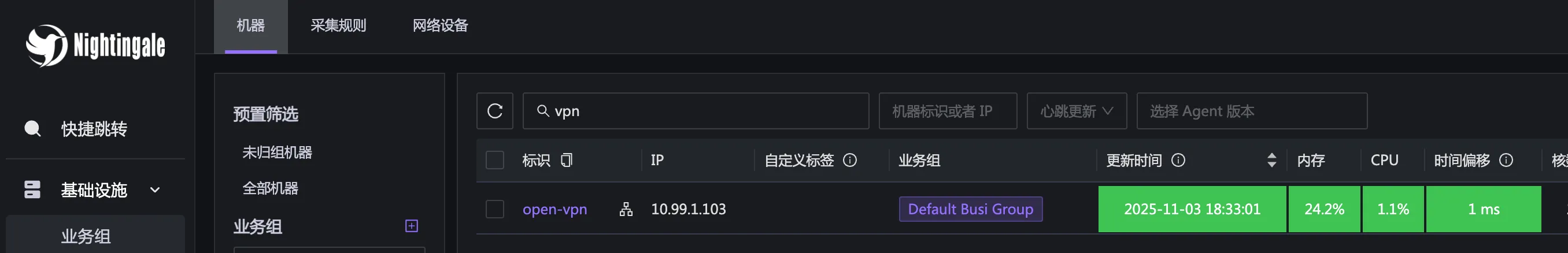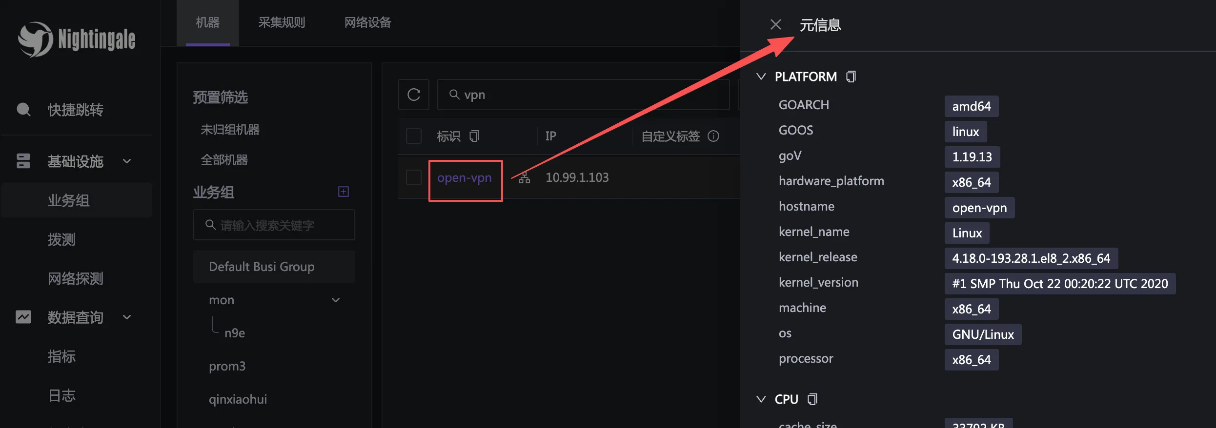 机器列表里的机器,会呈现一些字段,比如更新时间、时间偏移、内存、CPU 等字段,都是通过 Categraf 上报的元信息拿到的。