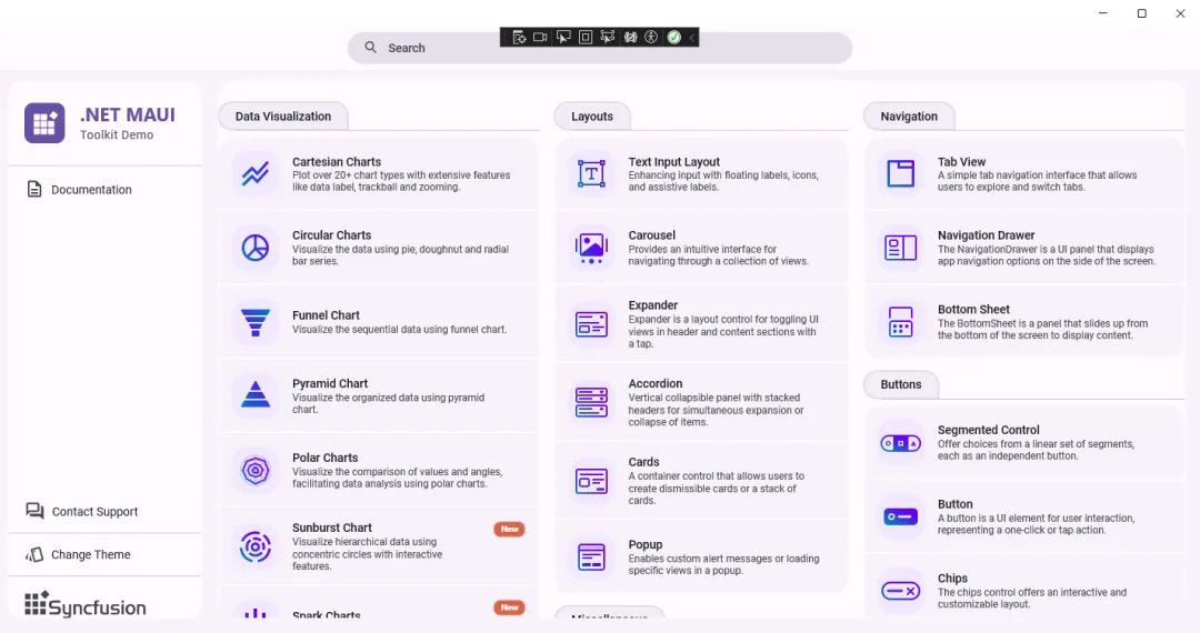 项目简介: Syncfusion.Maui.Toolkit 是一套开源(MIT license)、免费、美观、高性能的跨平台 .NET MAUI 控件库,旨在简化 Android、iOS、macOS 和 Windows 跨平台应用开发。通过使用此工具包,开发者可以轻松构建美观且功能丰富的应用程序,从而缩短开发时间,同时确保跨平台的无缝和引人入胜的用户体验。