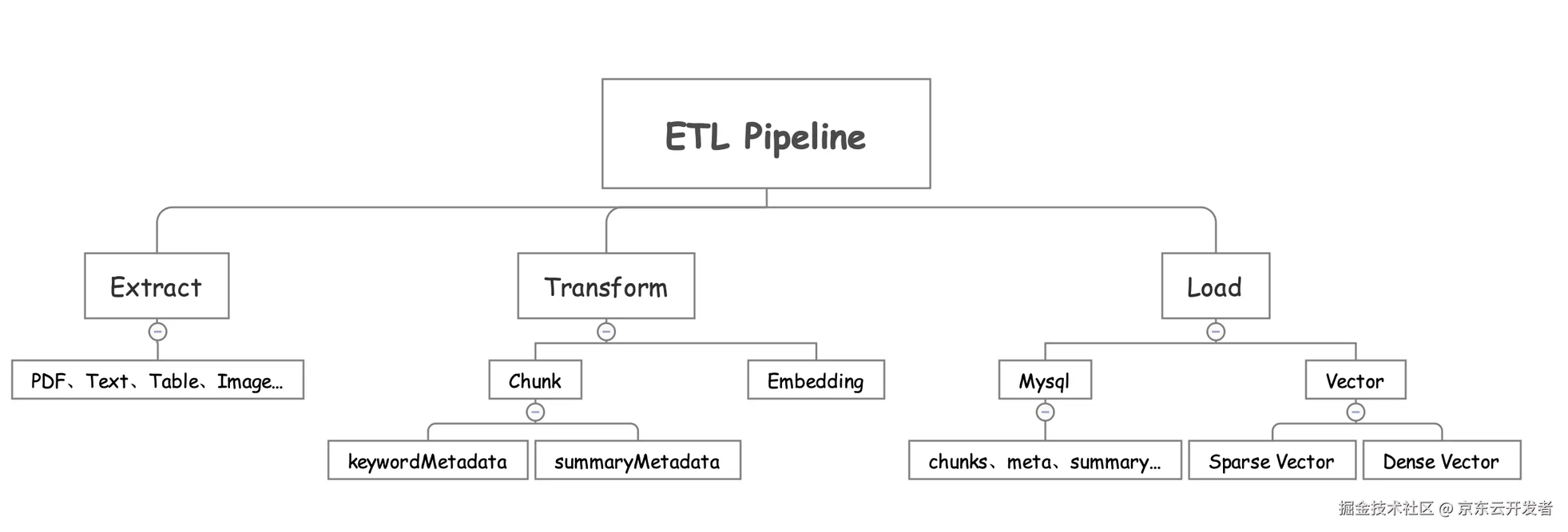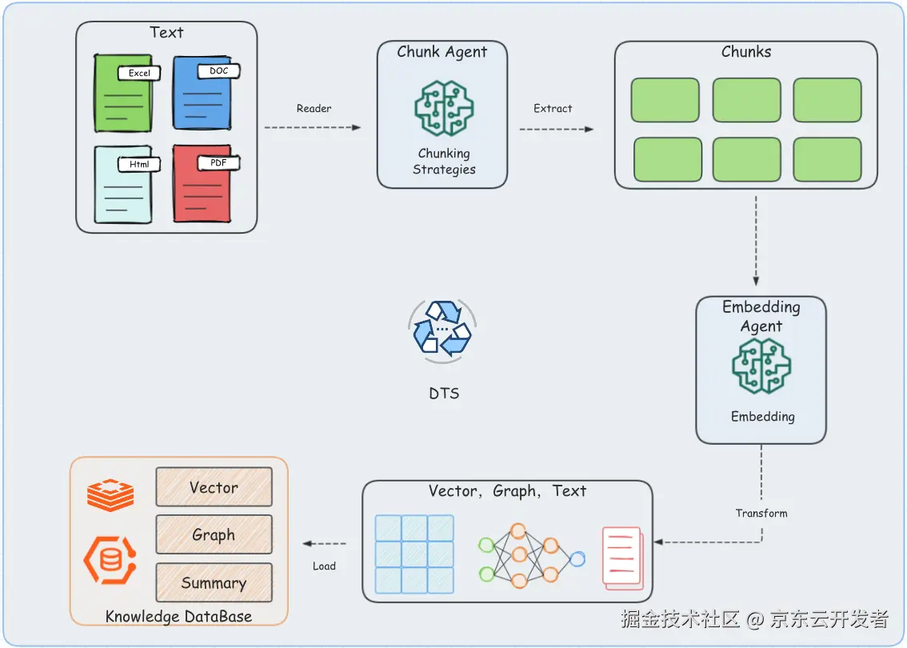数据加载(Load) : 数据存储,我们用的 Elasticsearch8+(ES)进行混合存储,当然也可以其他向量库和关系型数据库来存储。