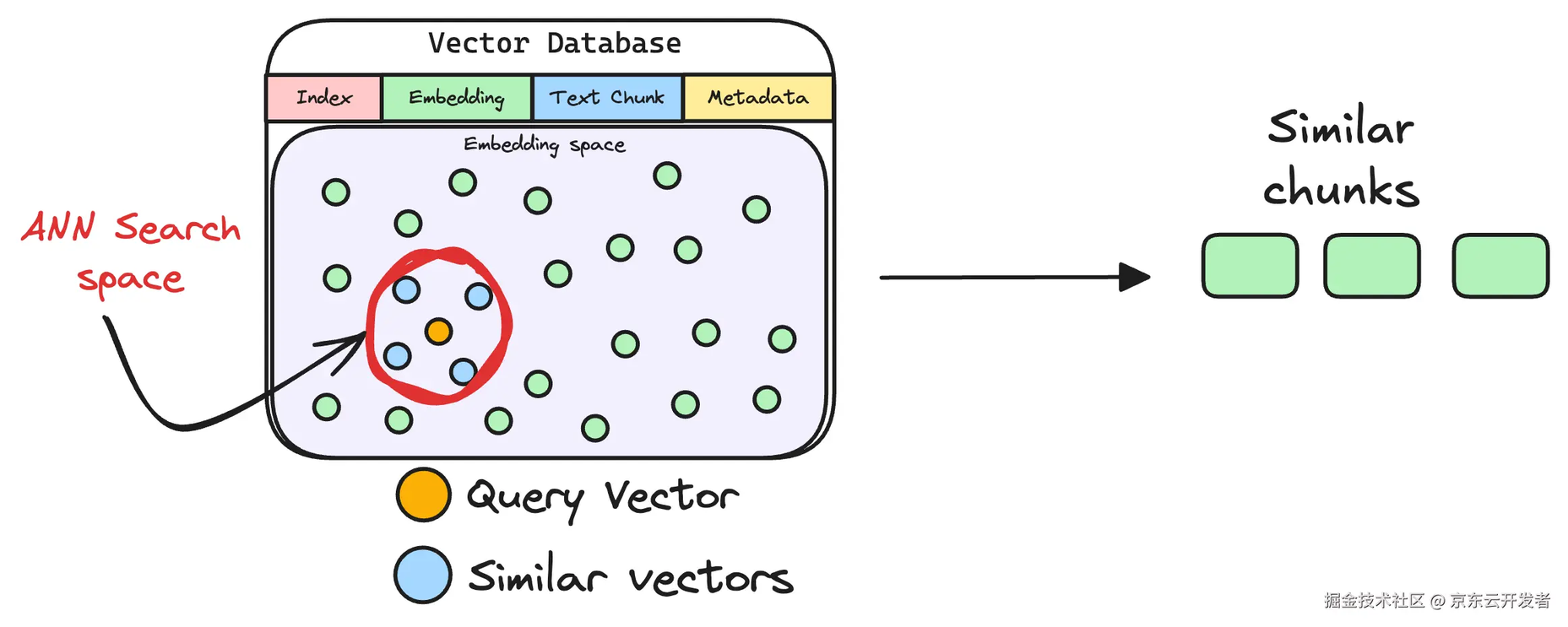 然后,将向量化的查询与数据库中现有的向量进行比较,以找到最相似的信息。常规的向量检索 ANN 算法,我们还支 kNN 算法,向量库的表结构的基础字段索引,向量块,原始文本块,原数据字段。