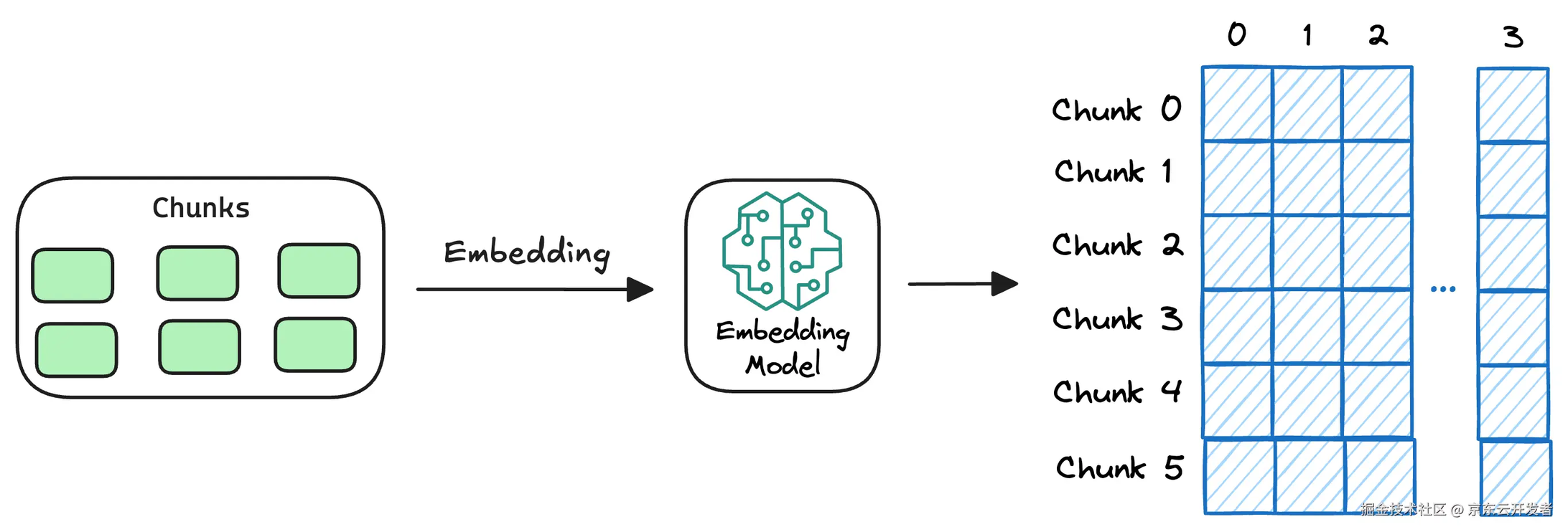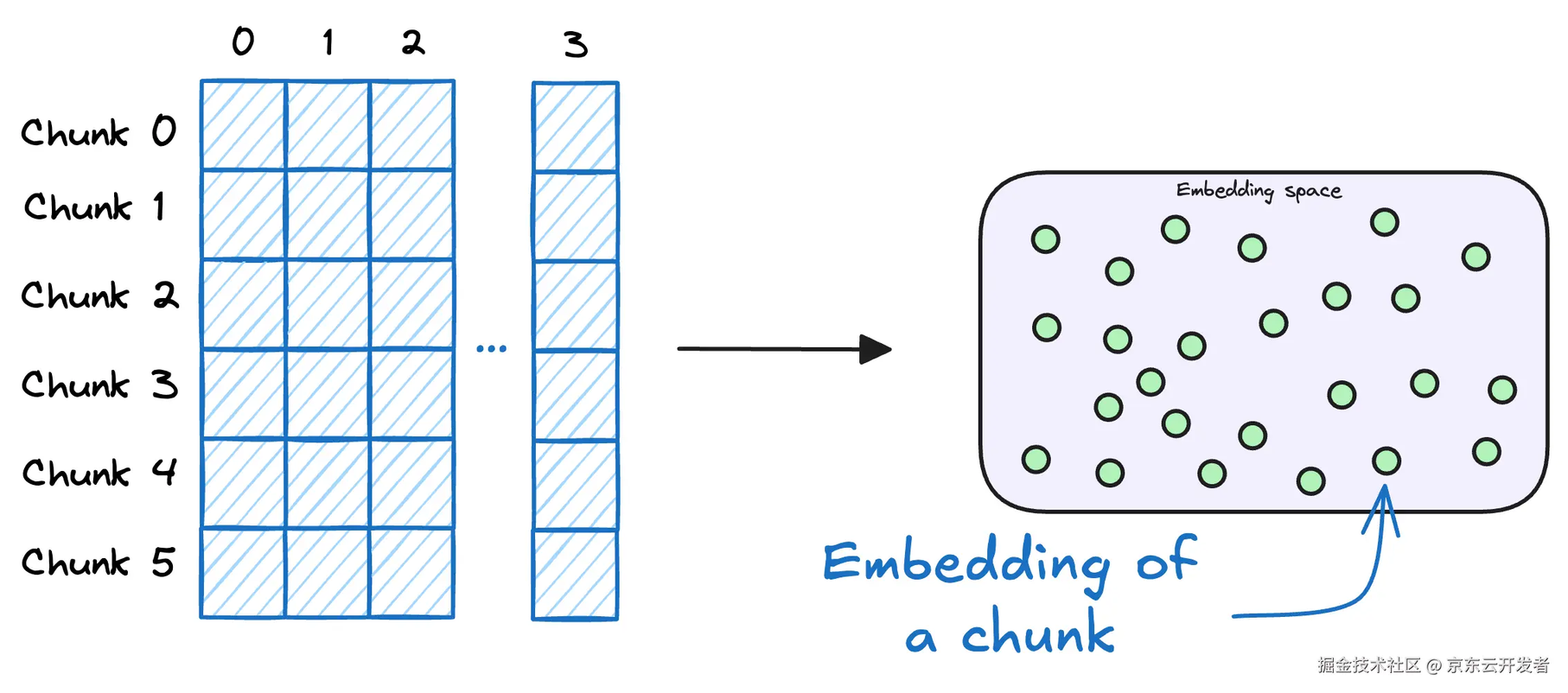 •文件转换(Transform):文件转换的核心有两个chunk和embedding。