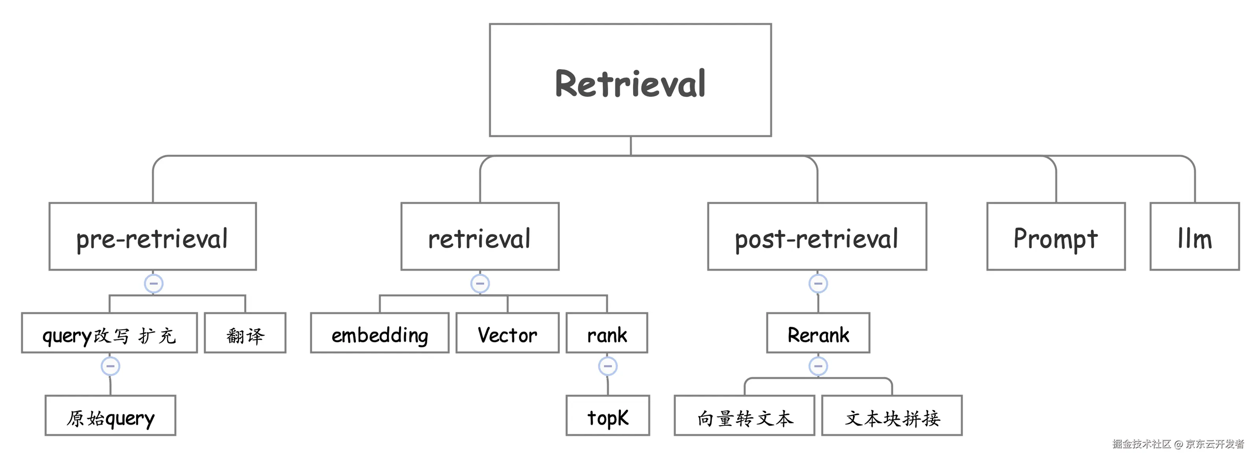 ⑦,③,④,⑤,⑥步骤是检索组件,它分为预处理、检索、后处理