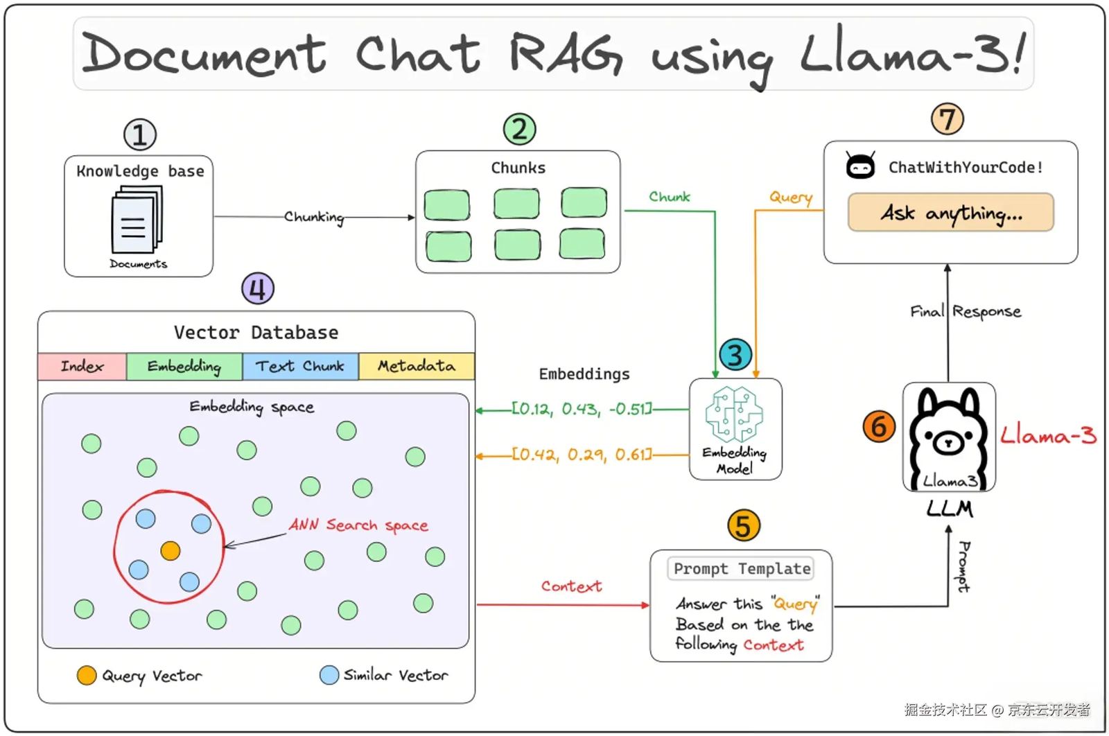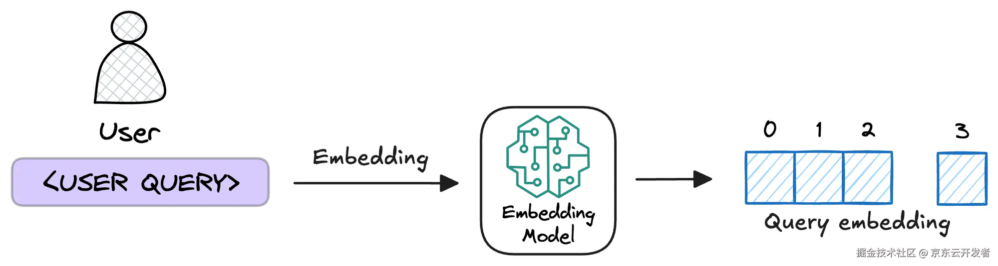 第③步中用相同的嵌入文本块模型,向量化用户的查询