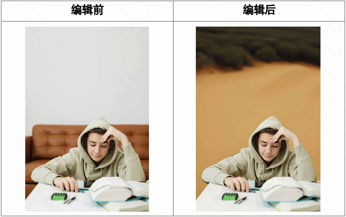 图像编辑:文字擦除、物体擦除/替换、人体表情/姿态调整、背景替换