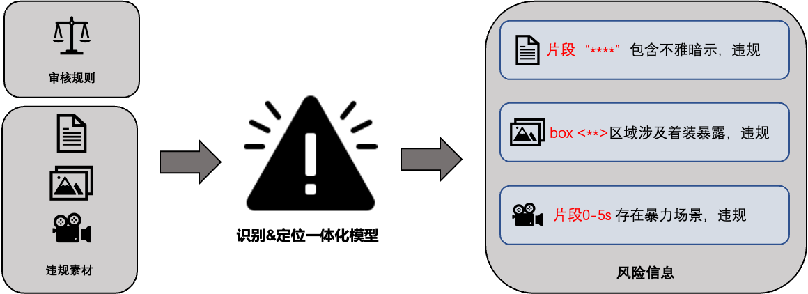 视频素材:精确到违规内容出现的起止时间戳,实现对动态内容的帧级管控。
