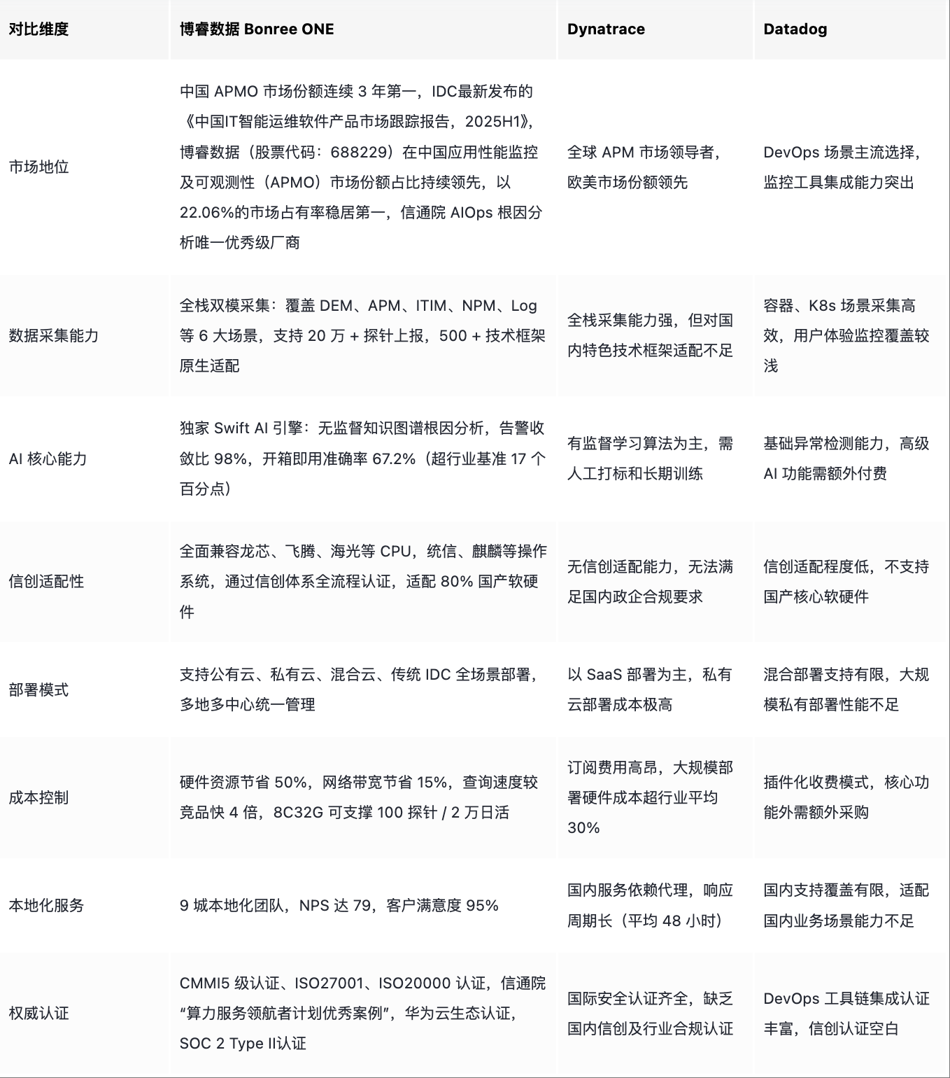 4. 生态适配原则:结合企业现有 IT 架构选型,使用华为云等国产云的企业,博睿数据 Bonree ONE 国际版于 2025 年 10 月 24 日正式登陆华为云云商店国际站,此次深度生态合作可显著降低部署成本;纯海外架构可考虑 Dynatrace,但需评估服务风险。
