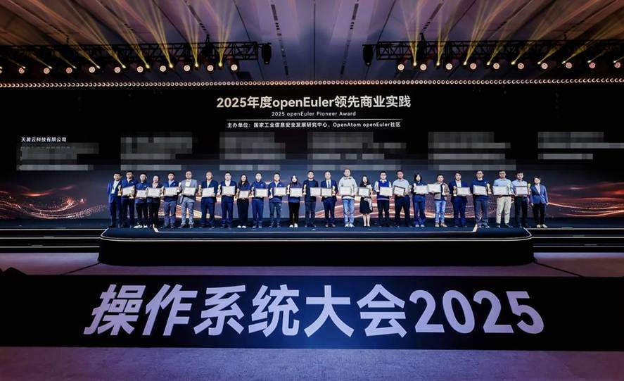 大会现场揭晓了“2025 年度 openEuler 领先商业实践”项目评选结果,“中国电信天翼云基础软件创新与实践”凭借行业规模化实践示范,荣获该奖项。