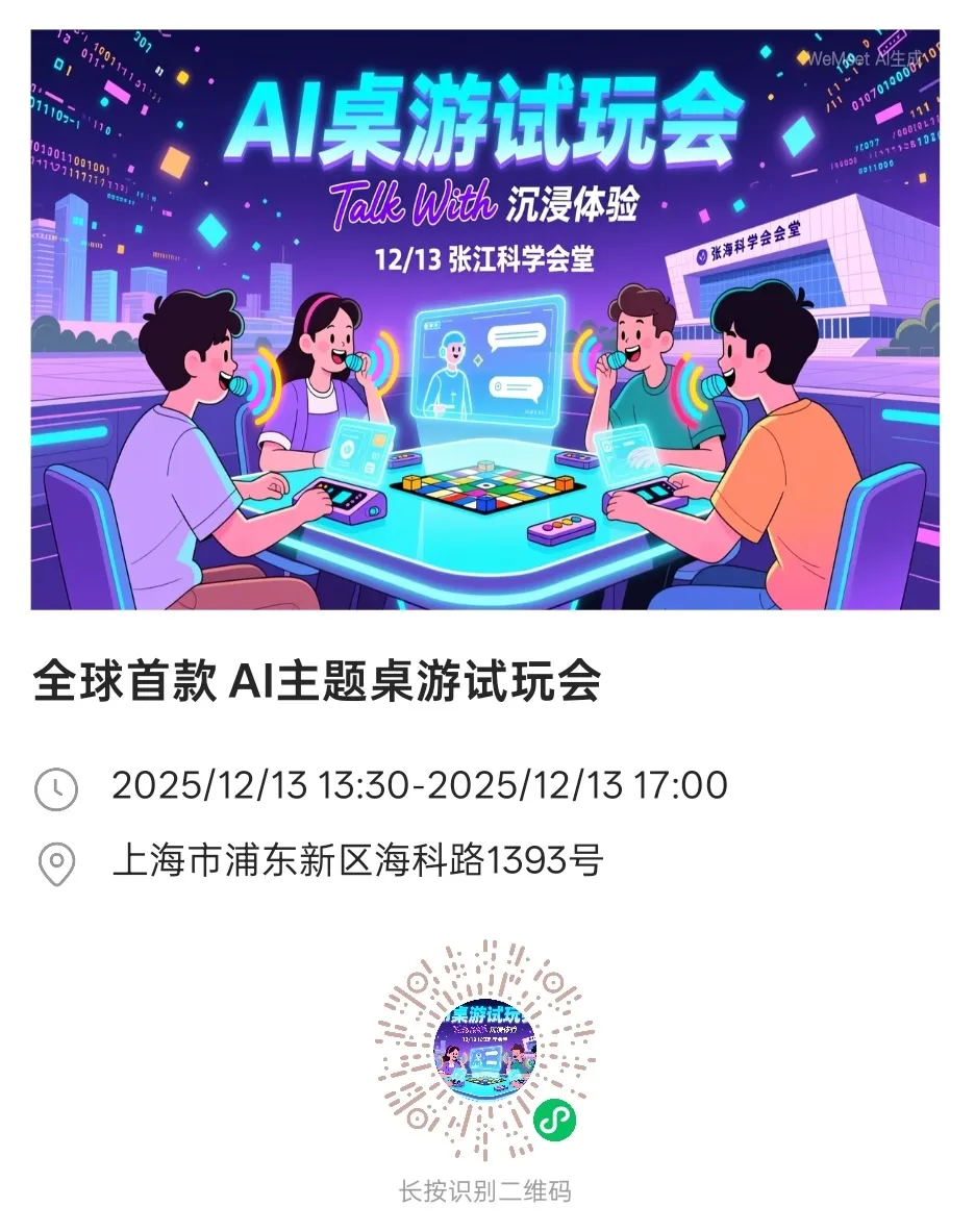 活动报名丨全球首款 AI 主题桌游《Talk With》线下开玩!上海 GDPS 2025 见!