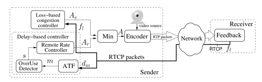 GCC 算法为 Google 提出的基于延时梯度估计和丢包的拥塞控制算法,在 WebRTC 中得到了⼴泛利用,目前为 WebRTC 默认使用的算法。