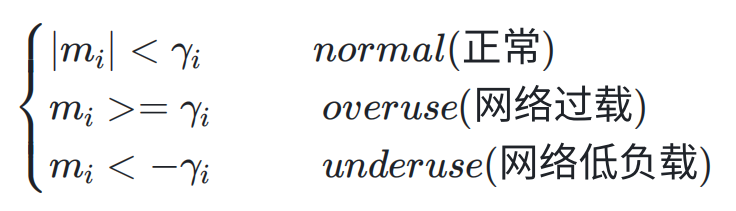算法通过比较 mi 和 的 γi 值来判断当前网络负载状况,如下公式 7 和图所示: