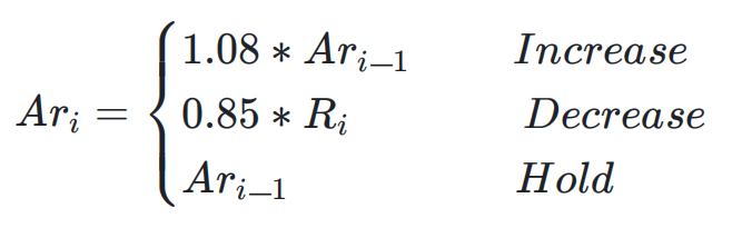 这三种状态下的带宽调整策略如下公式 8 所示: