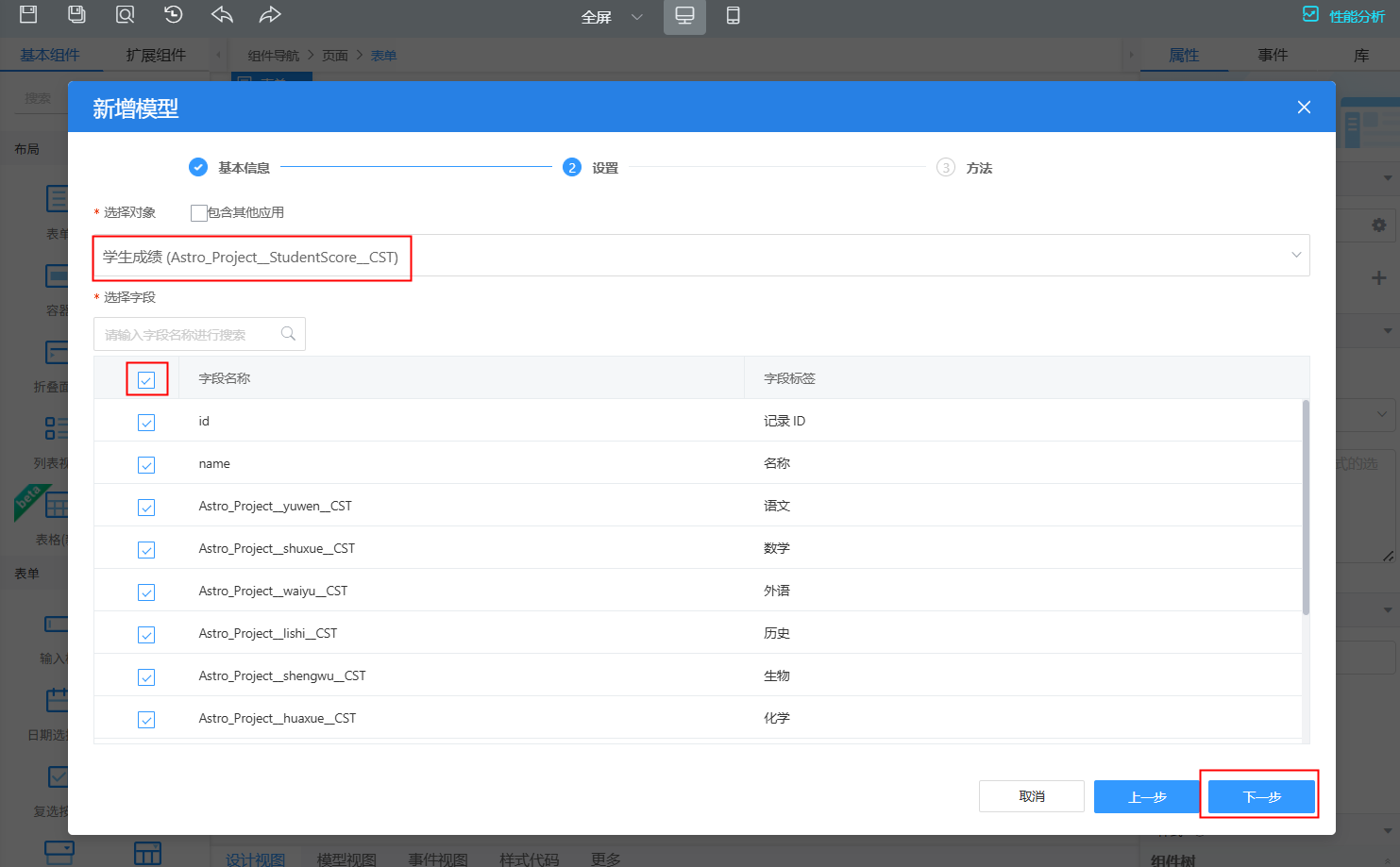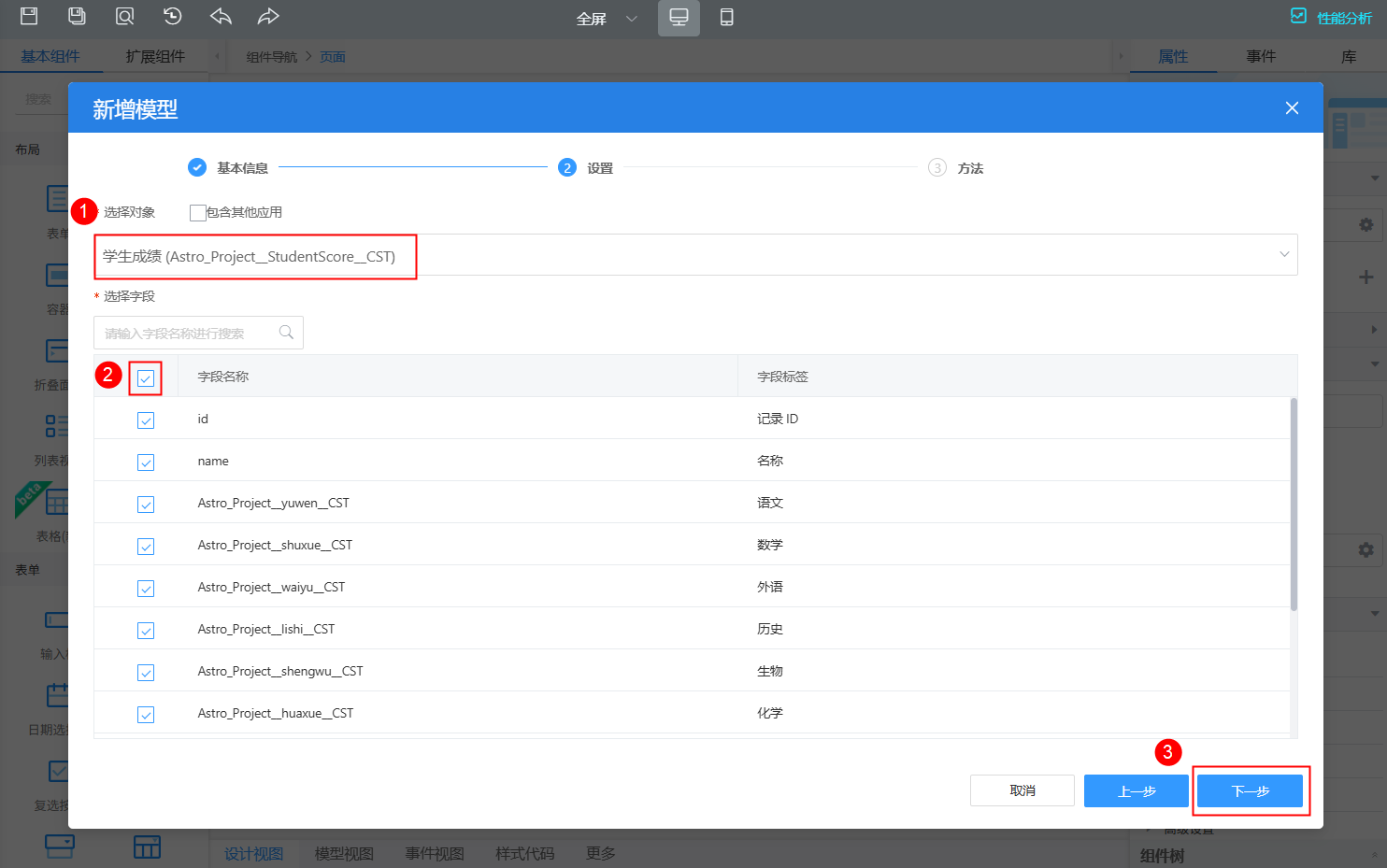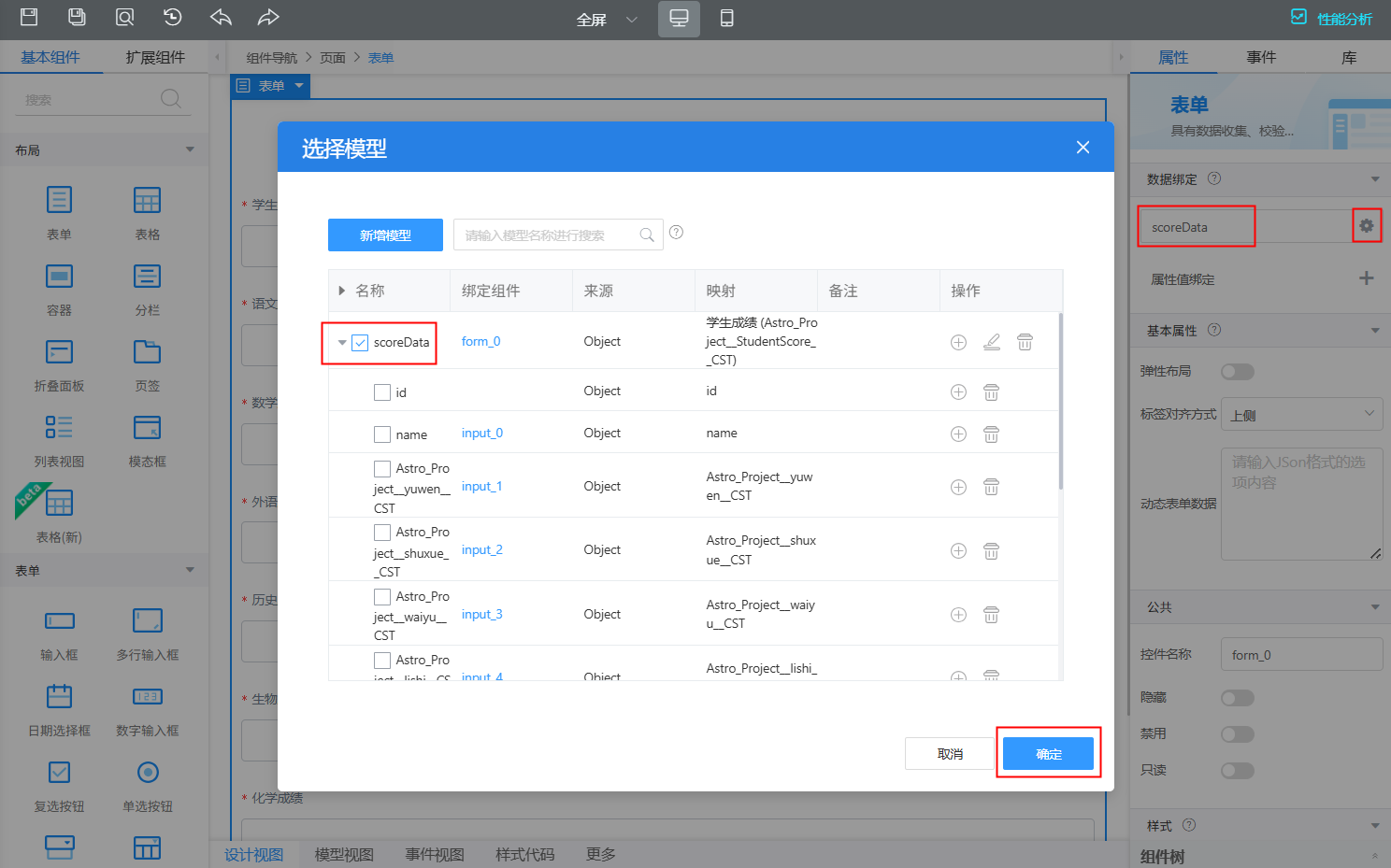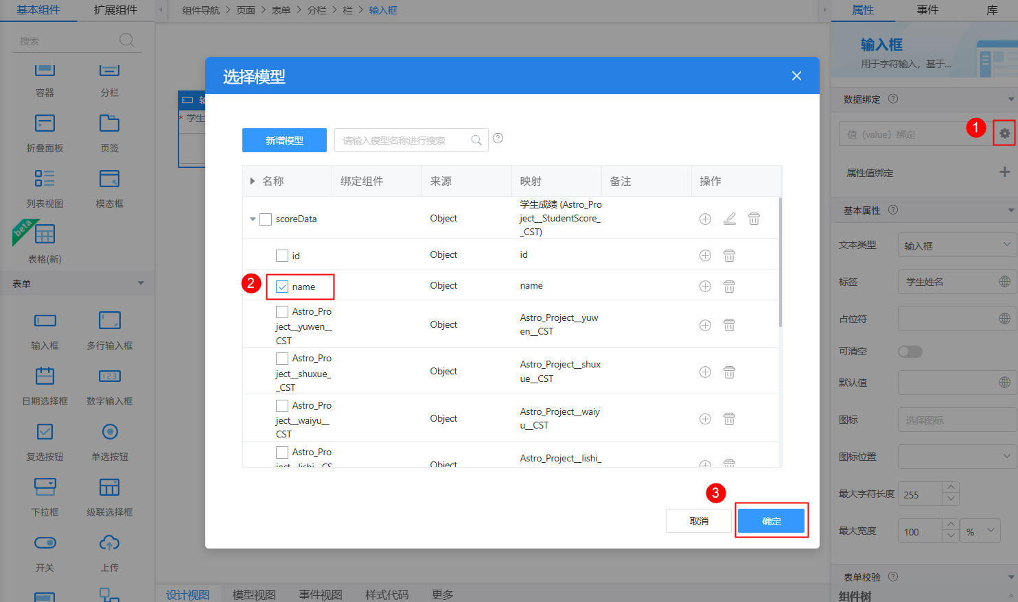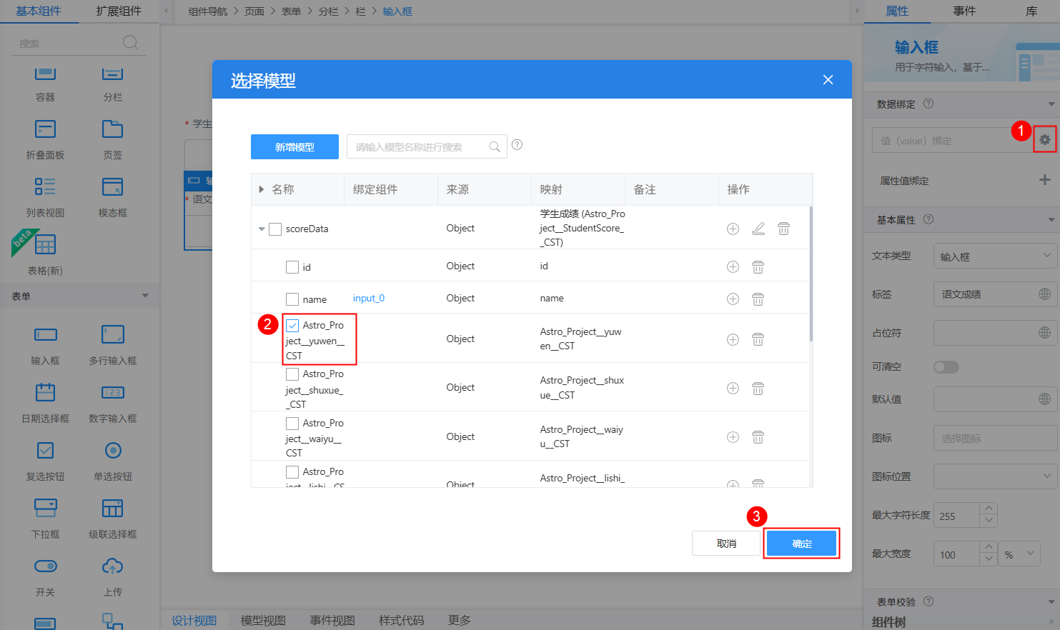 语文成绩与数据模型中 Astro_Project_yuwen_CST 绑定: