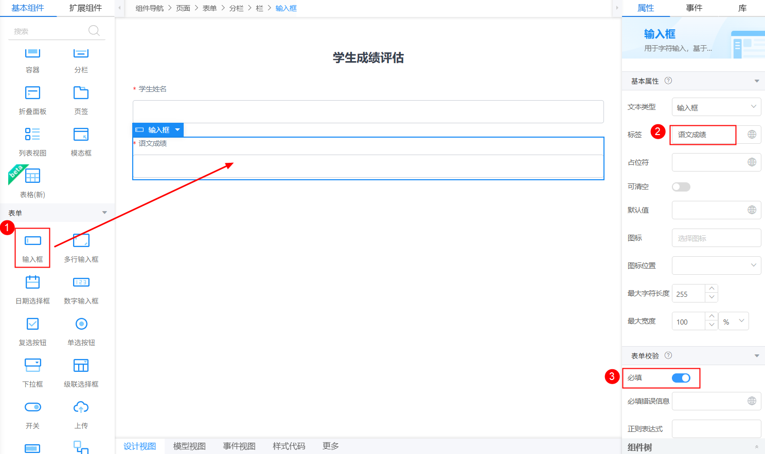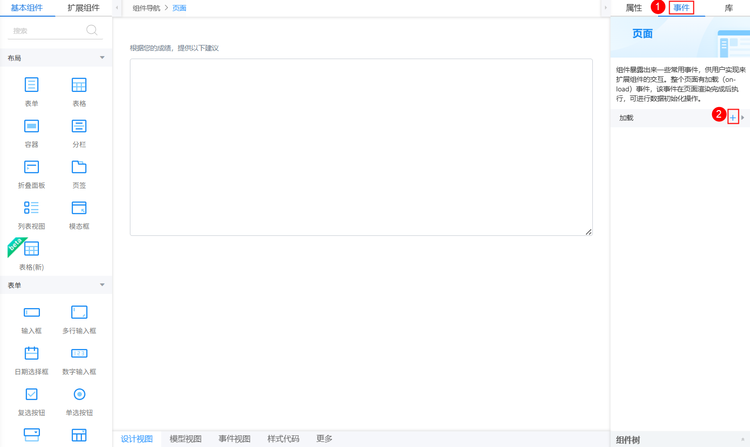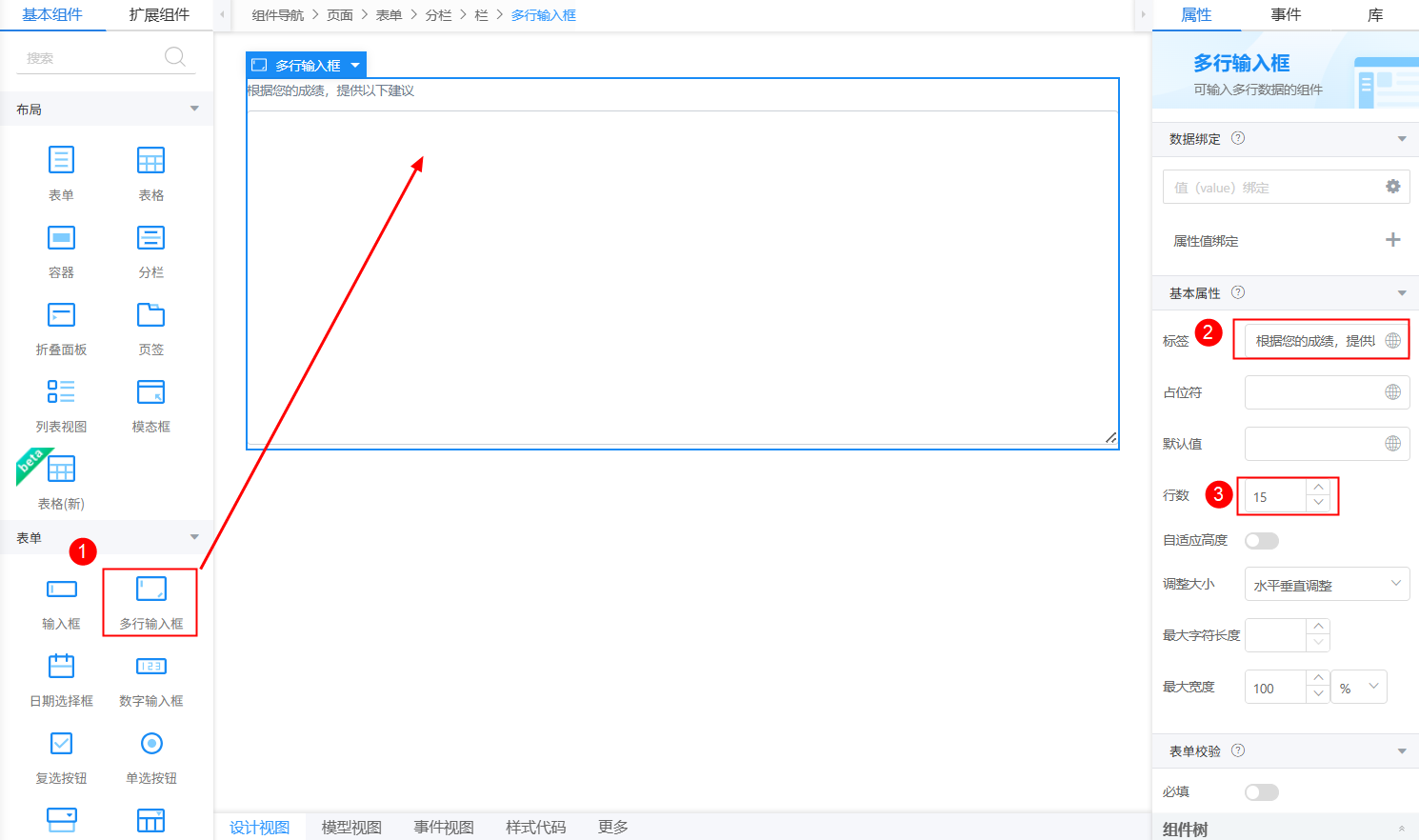 拖入多行输入框,标签:根据您的成绩,提供以下建议,行数:15 行。
